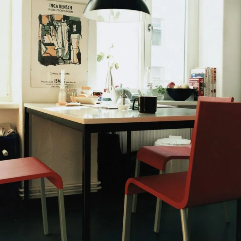 De comfortabele zitting heeft Maarten van Severen gecombineerd met een minimalistische vormgeving. De slanke en gestroomlijnde vorm trekt niet alle aandacht, maar past zich bescheiden aan de rest van uw interieur aan. Hierdoor is de stoel gemakkelijk te combineren met vrijwel elke stijl, helemaal omdat u voor de zitting en het frame de keuze heeft uit vele kleurencombinaties. r