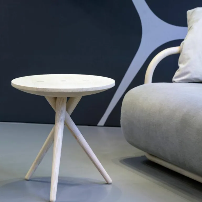 De 1025 Bijzettafel van Thonet is een combinatie van elegantie en minimale vormgeving: de drie massief houten poten die met een afstand van steeds 120 graden onder het blad geplaatst zijn vormen een denkbeeldige cirkel op de vloer. Een bijzonder mooi detail is dat de tafelpoten ook een de bovenzijde van het tafelblad zichtbaar zijn. De 1025 Bijzettafel is naast zijn geraffineerde ontwerp ook bijzonder vanwege zijn hoogwaardige afwerking. De bijzettafel is verkrijgbaar in massief geolied walnoot, essen en eiken. De 1025 Bijzettafel heeft een diameter van 45 centimeter en een hoogte van 48 centimeter.