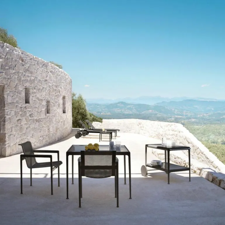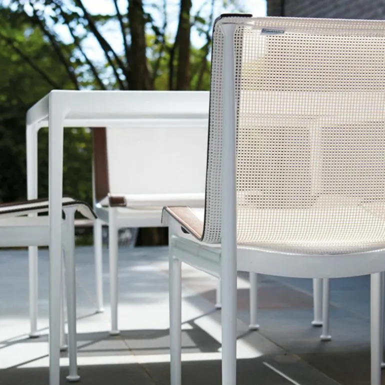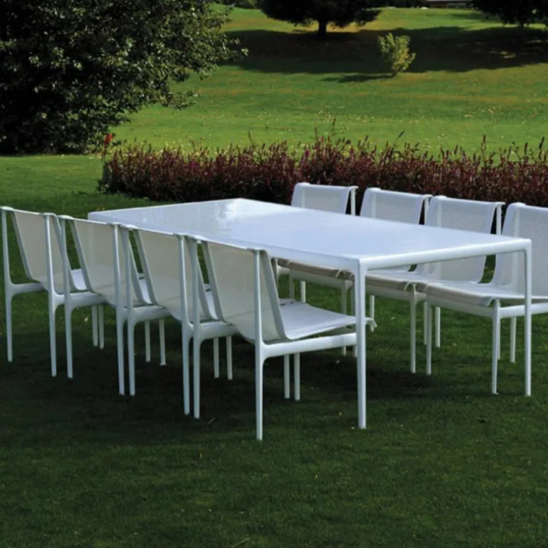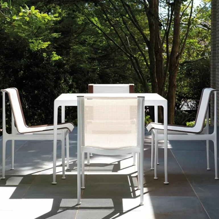 In de 1966 stoel is werkelijk geen één onderdeel te ontdekken dat niet of minder geschikt is voor buitengebruik. Zo is het elegant gevormde frame gemaakt van gegoten en geëxtrudeerd aluminium, afgewerkt met een weersbestendige polyester poedercoating. Het blad is gemaakt van porselein, verhard en verstevigd met een ondoorzichtige beschermlaag van gesmolten glas: email. Voordeel van email of emaille is dat het hygiënisch, hard, onbrandbaar en duurzaam is. Bovendien is het zeer goed bestand tegen verkleuring door uv-straling. Alle verbindingen en ondersteuningen zijn gemaakt van roestvast staal. Kortom; een tafel die de meeste barre weersomstandigheden doorstaat.r
