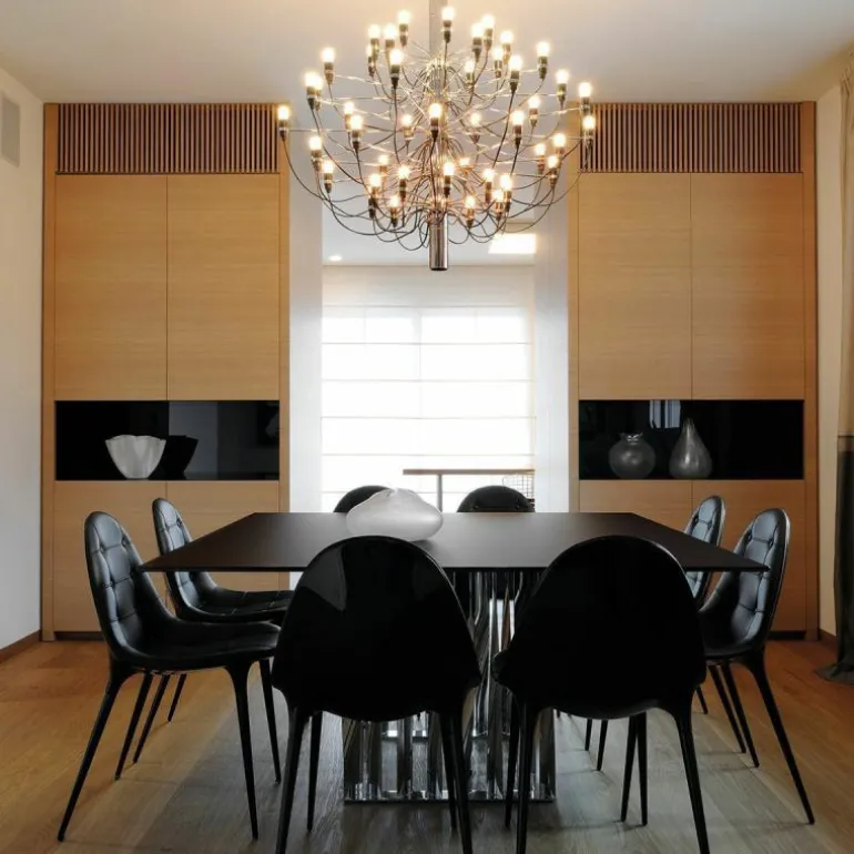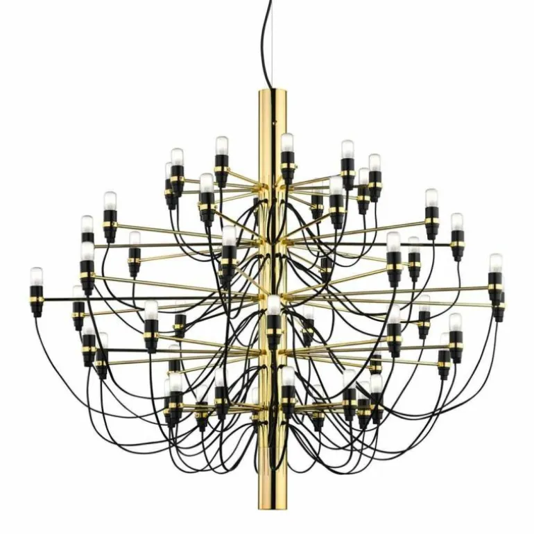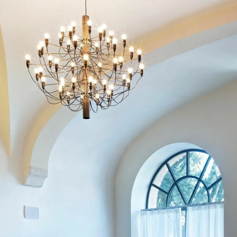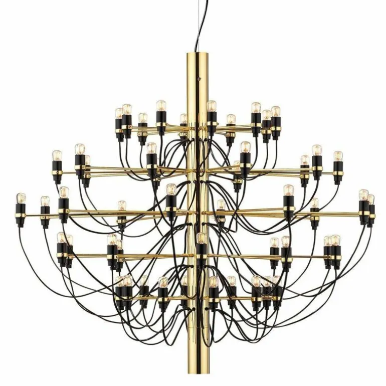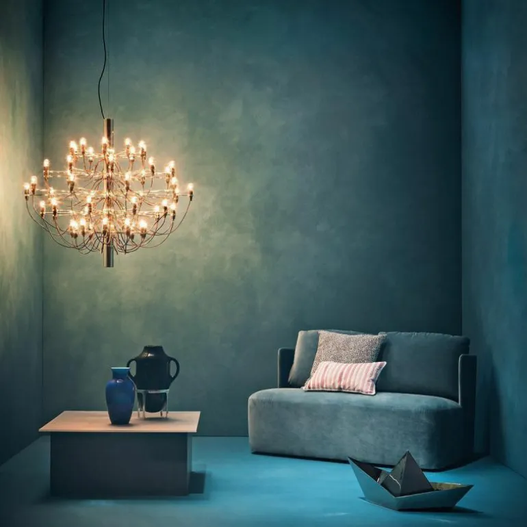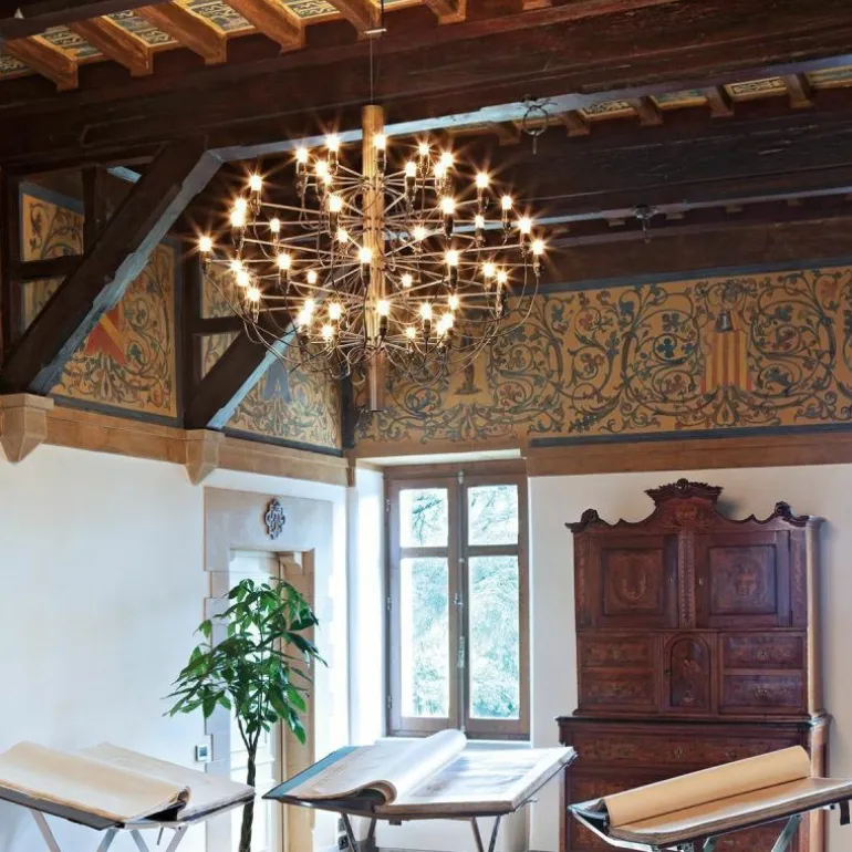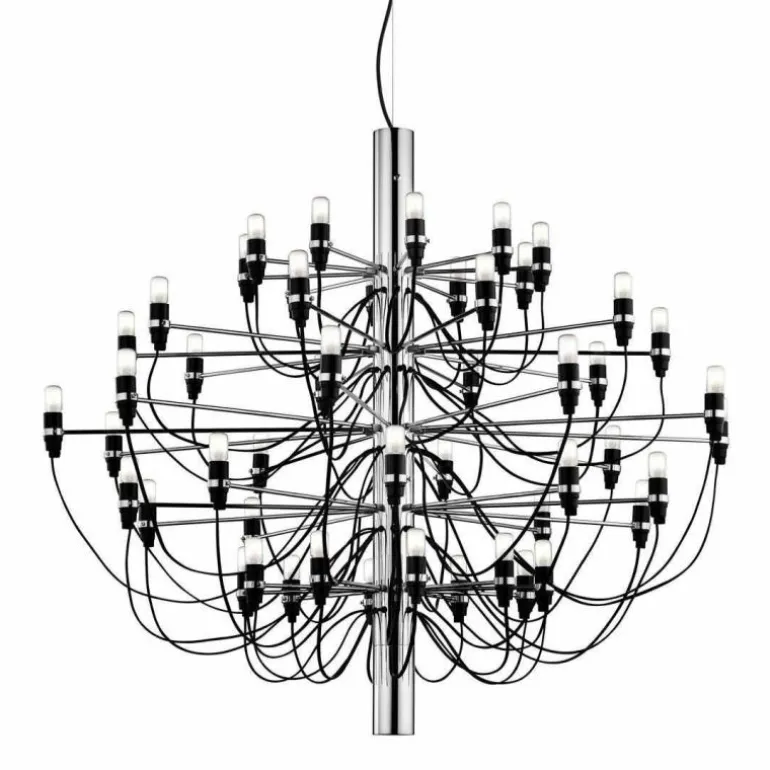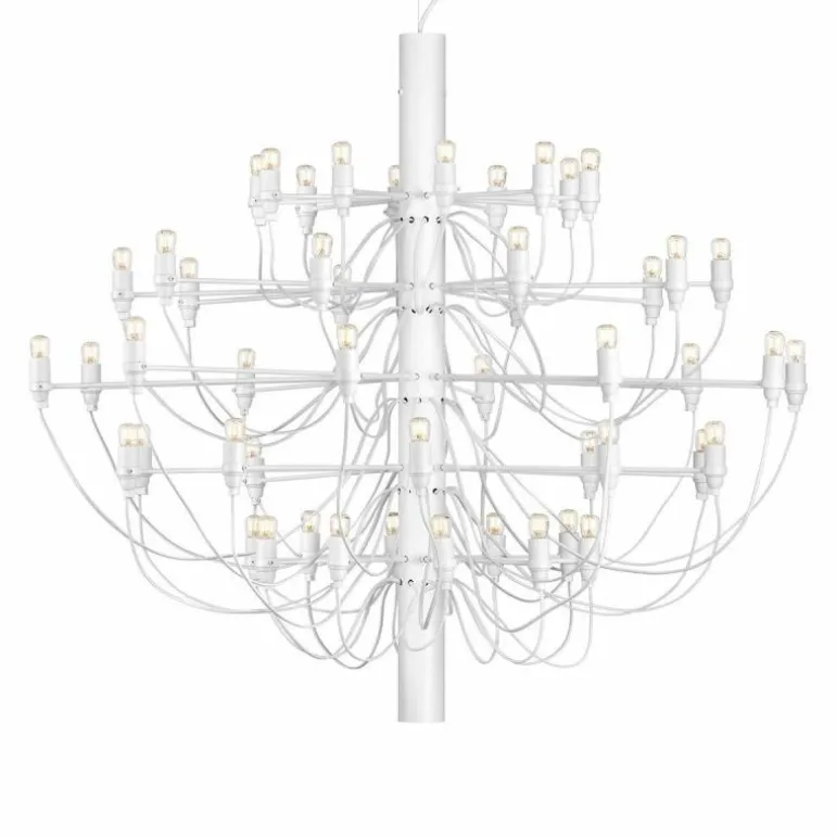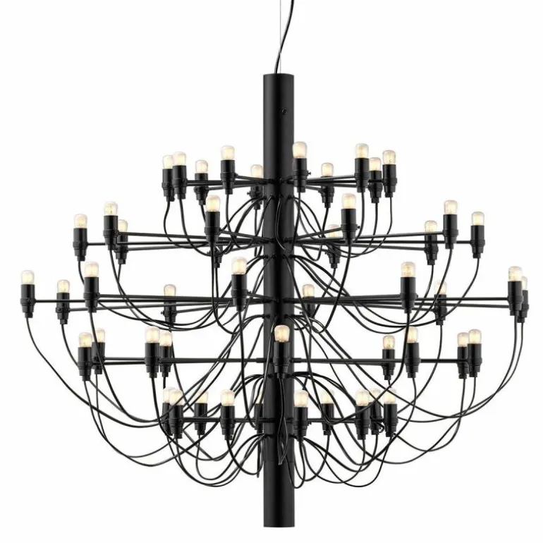 Naast de 2097 Hanglamp met 50 lampen is er ook een variant verkrijgbaar met 30 lampen. De 2097 geeft een prachtig en zeer prettig diffuus licht. De plafondbevestiging en de kap zijn vervaardigd van staal.r