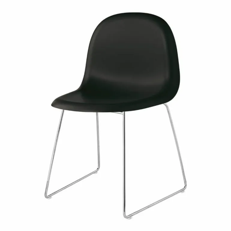 De Gubi 3D Eetkamerstoel Slede van Komplot Design heeft een metalen onderstel in de kleur zwart of chroom. De zitting van de stoel kunt u naar keuze laten vervaardigen uit hout – Eiken-,Amerikaans noten- of zwart gebeitst beukenhout – of Hirek, een materiaal verkrijgbaar in acht prachtige kleuren. Ook kunt u kiezen voor deze stoel inclusief bekleding, waarbij u ervoor kunt kiezen de gehele zitschaal te laten bekleden of alleen de voorkant. U heeft hiervoor de keuze uit diverse verschillende stof- en ledersoorten in uiteenlopende uitvoeringen. De stoel is 52 centimeter in breedte, 83 centimeter in hoogte en 53.5 centimeter in diepte. 45 centimeter staat voor de zithoogte van de stoel.