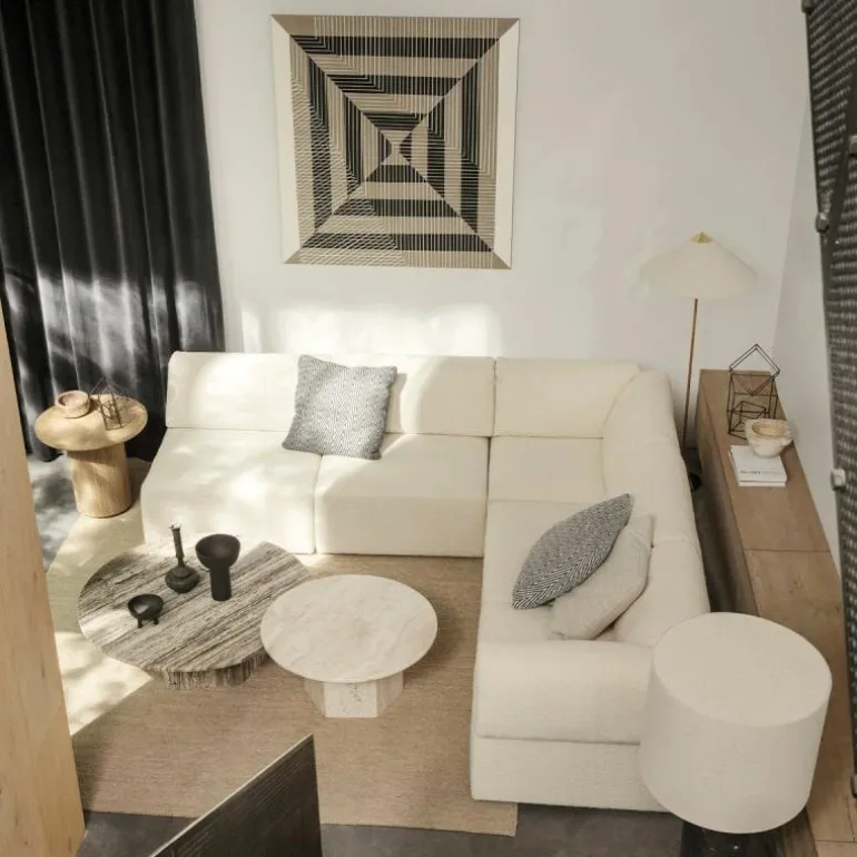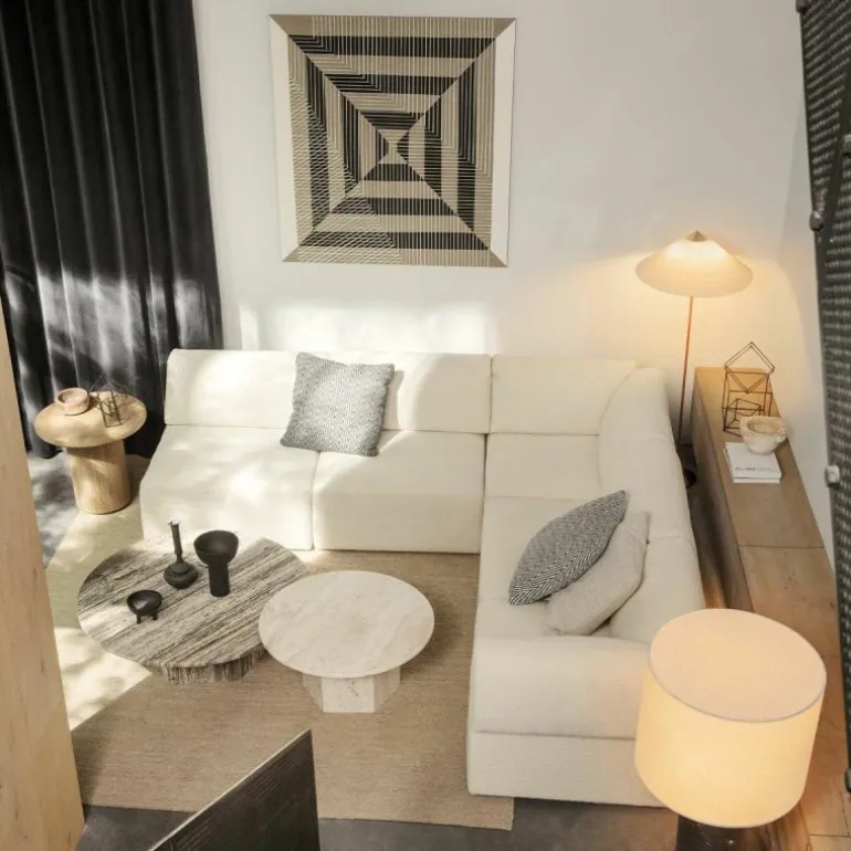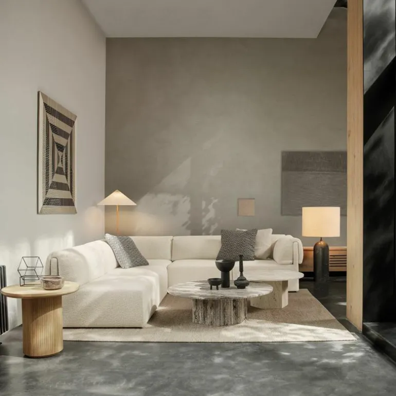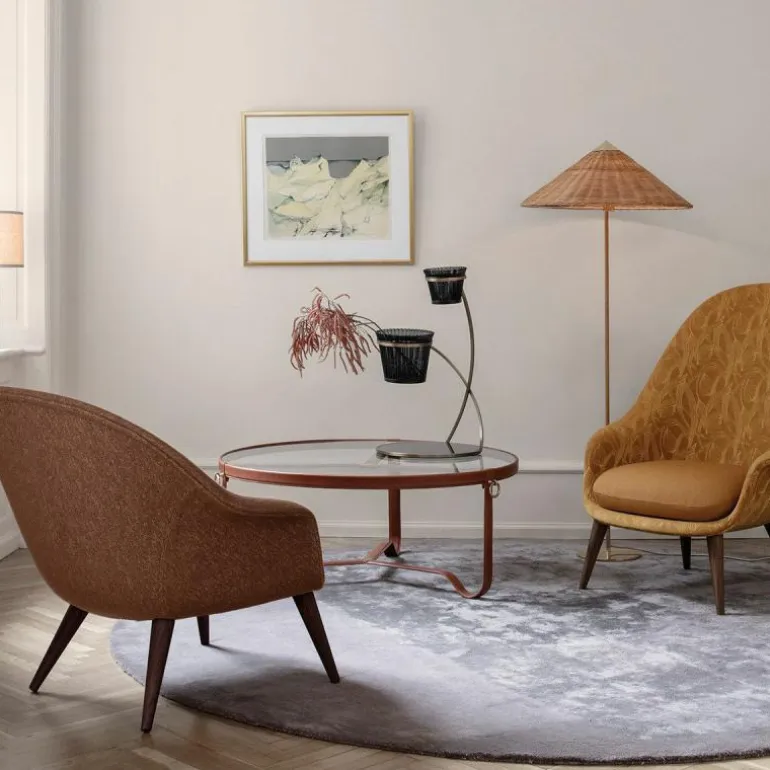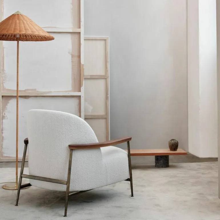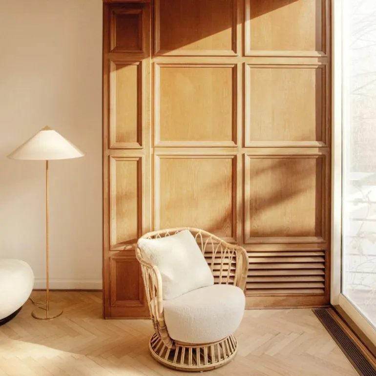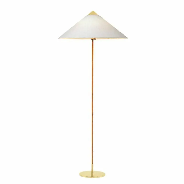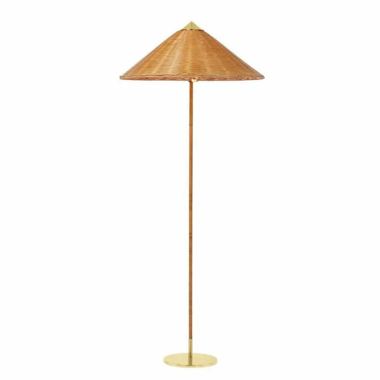 De voet, bovenkant van de kap en schakelaar zijn gemaakt van gepolijst messing. De steel is geheel bedekt met rotan en u heeft voor de lampenkap de keuze uit een rotan variant en een variant van canvas. Vanwege de natuurlijke materialen kunnen oppervlakte en structuur variëren.