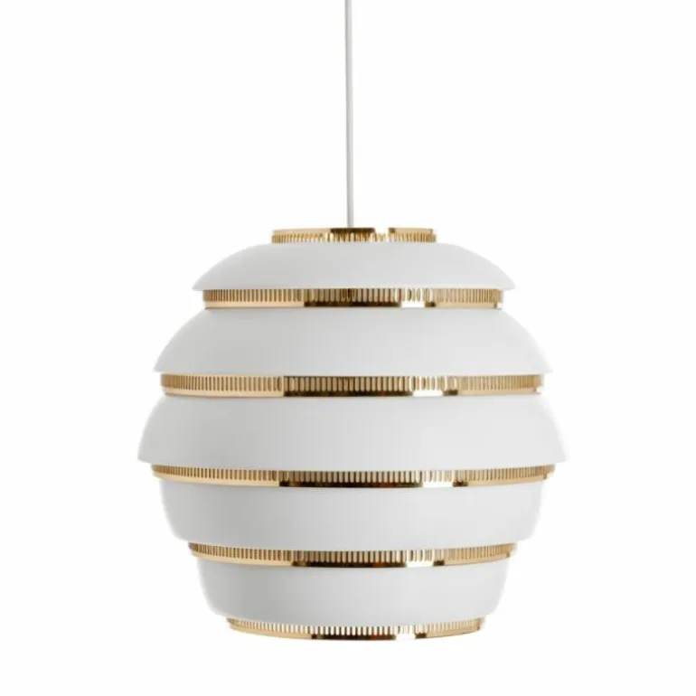 De Aalto A331 hanglamp van Artek heeft een hoogte van 30 centimeter en een diameter van 33 centimeter. De kabel is 250 centimeter lang. De hanglamp is twee mogelijkheden verkrijgbaar: De kap is witgeverfde aluminium en de ringen kan in chroom of messing. De hanglamp heeft een gewone fitting (1 x E27 max. 75W) en is geschikt voor lampen uit de energieklassen A++ tot en met E.
