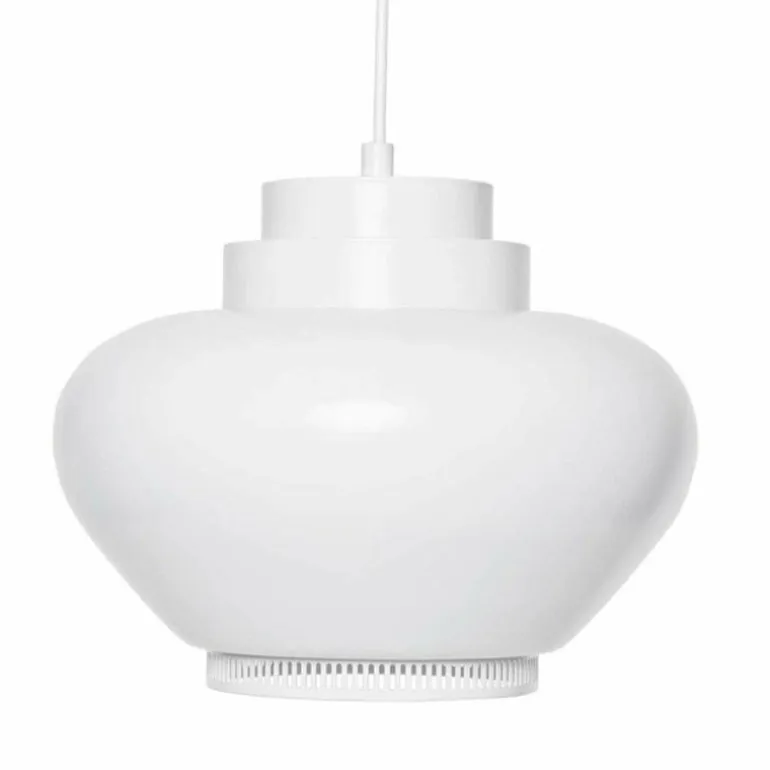 De Artek A333 Hanglamp is ontworpen door Alvar Aalto. Deze tijdloze klassieker is gemaakt in het jaar 1950 en staat ook bekend onder de bijnaam ‘’Raap’’, vanwege de bijzondere vorm die hij heeft gekregen. Dankzij de openingen in de stalen ring wordt het licht mooi verspreid. De hanglamp past perfect in de keuken, hal of eetkamer.Alvar Aalto was een Fins architect en industrieel ontwerper en stond bekend om zijn meubels, lampen en textiel. Het design van Alvar Aalto is gebaseerd op menselijke en natuurgerichte ideologie. Zijn design geniet populariteit over de hele wereld, ongeacht de veranderingen in de hedendaagse designtrends. Alvar Aalto was één van de eerste en meest invloedrijke architecten in Scandinavië. Zijn bekendste werken zijn de Finlandiahal te Helsinki, het stadhuis te Säynätsalo en de Technische Universiteit van Helsinki.In 1935 werd Artek door 4 architecten opgericht: Alvar en Aino Aalto, Maire Gullsichsen en Nils Gustav-Hahl. Alle Artek producten zijn functioneel en esthetisch gecreëerd. Tot op de dag van vandaag staat Artek bekend als één van de meest innovatieve designmerken op het gebied van modern design en het creëren van nieuwe wegen op het snijvlak van design, architectuur en kunst.De A333 Hanglamp van Artek heeft een hoogte van 20 centimeter en een diameter van 25.5 centimeter, de kabel is 250 centimeter lang. De kap van de hanglamp is uitgevoerd in wit staal en de ring aan de onderzijde is mogelijk in messing of wit. De hanglamp heeft een standaard fitting (1 x E27 max. 60W) en is geschikt voor lampen uit de energieklassen A++ tot en met E.