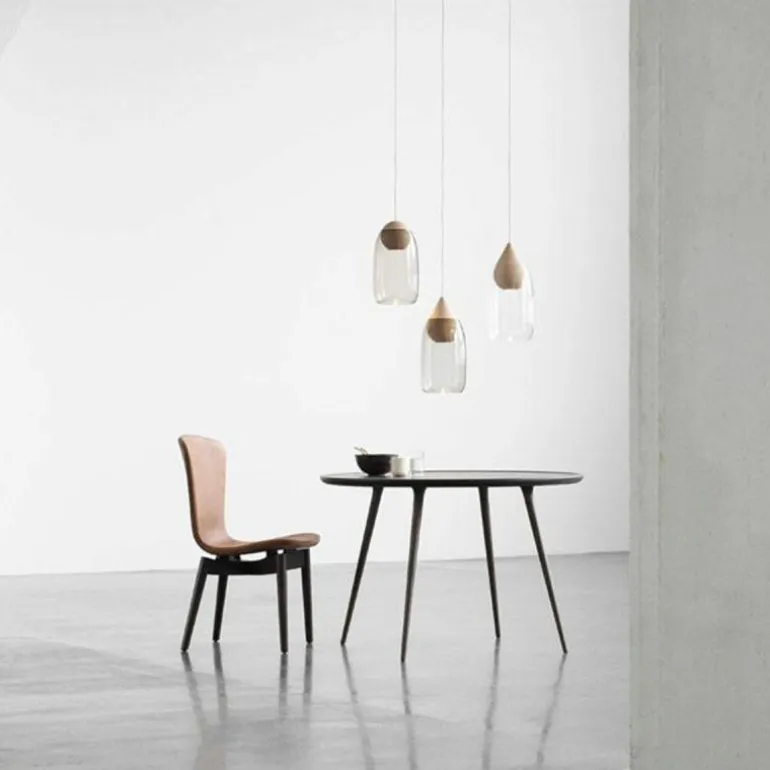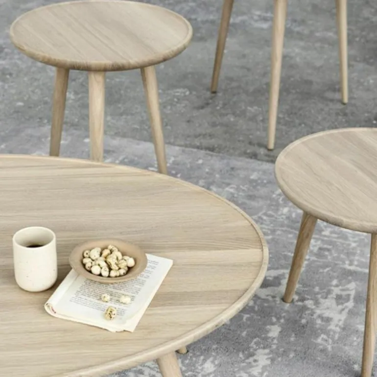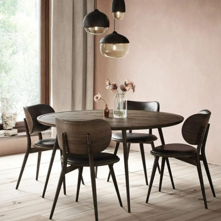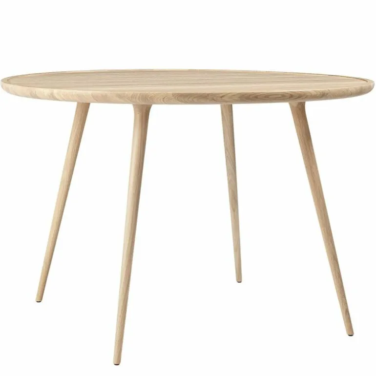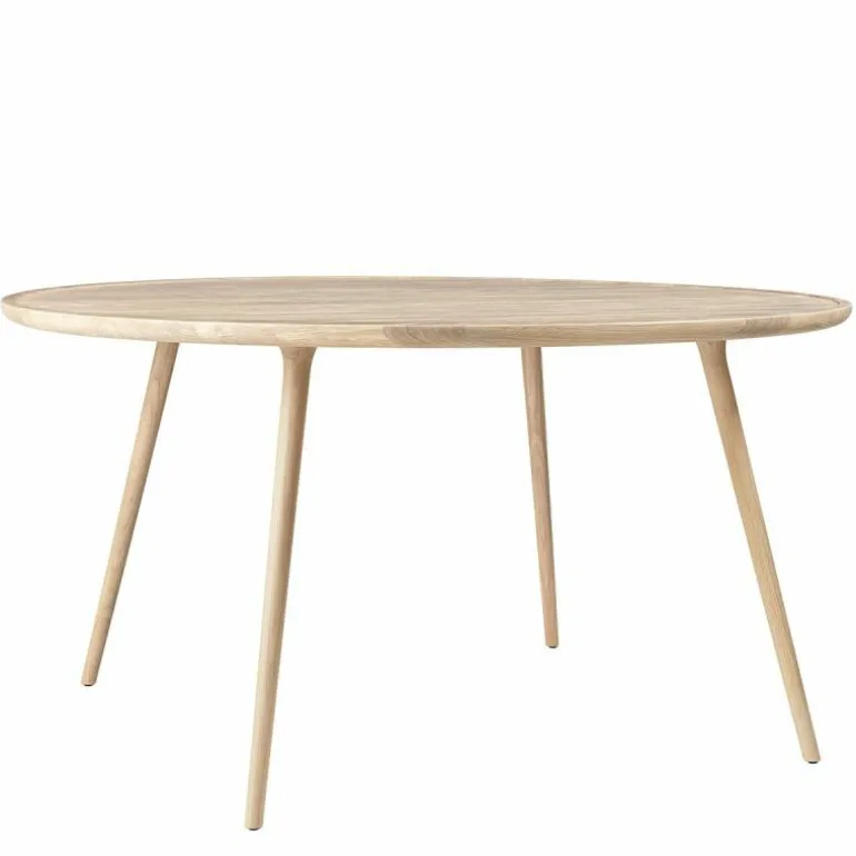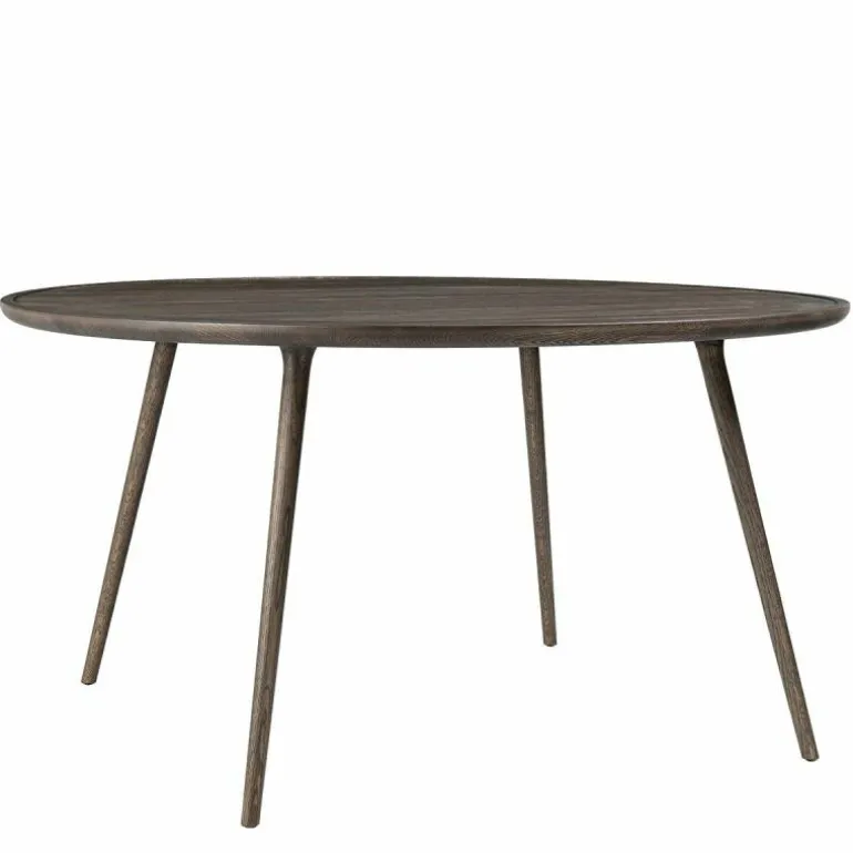 De Accent Eettafel kan uitgevoerd worden in mat gelakt eiken of ‘Sirka Grey Stained’ eiken, dat een donkerbruine uitwerking heeft. Daarnaast heeft u keuze uit een tafelblad met een diameter van 110 of 140 centimeter.