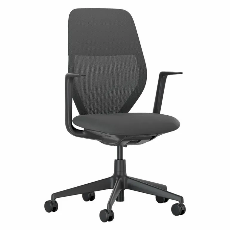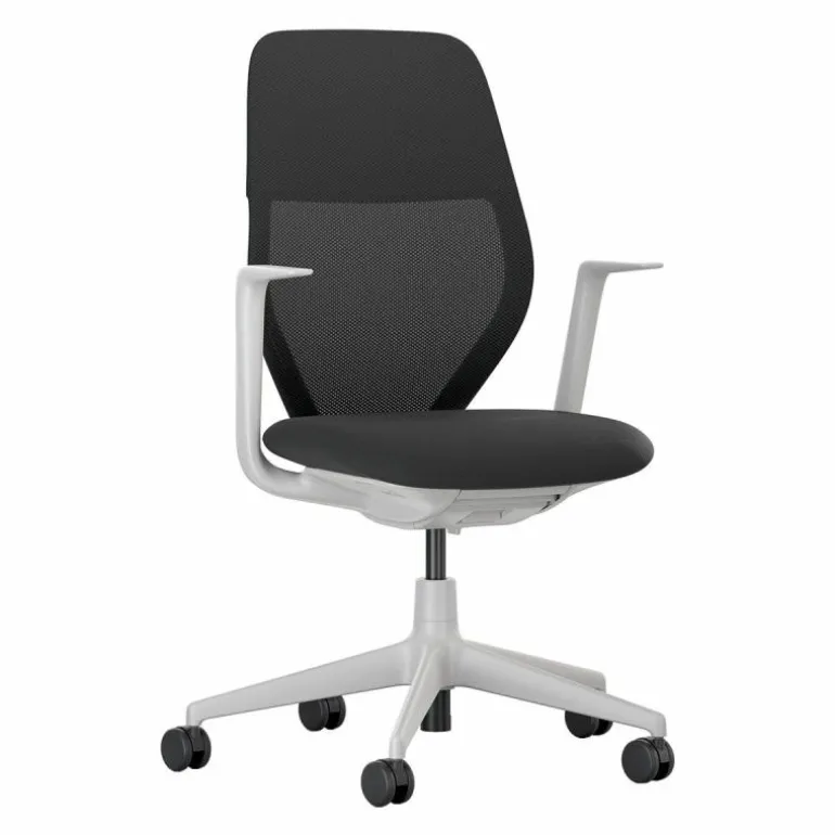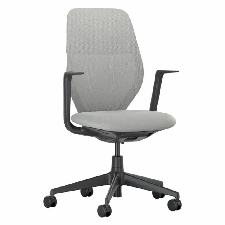De zitting is zowel in de hoogte als in de diepte verstelbaar. Het zitmechanisme is voorzien van automatische gewichtsaanpassing en twee standen voor de weerstand van de rugleuning. Het frame is vervaardigd uit polypropyleen in deep black of soft grey en staat op een vijfsteronderstel met dubbele zwenkwielen. r