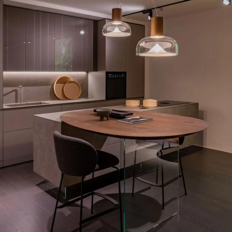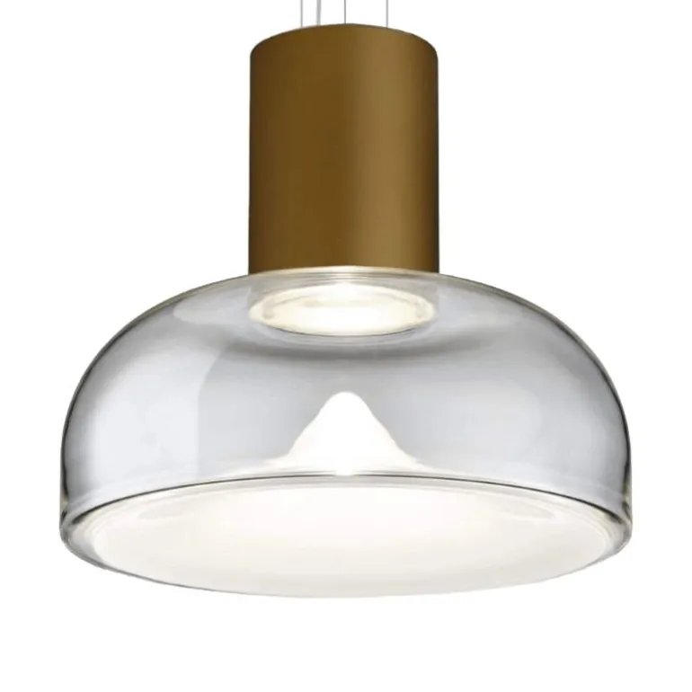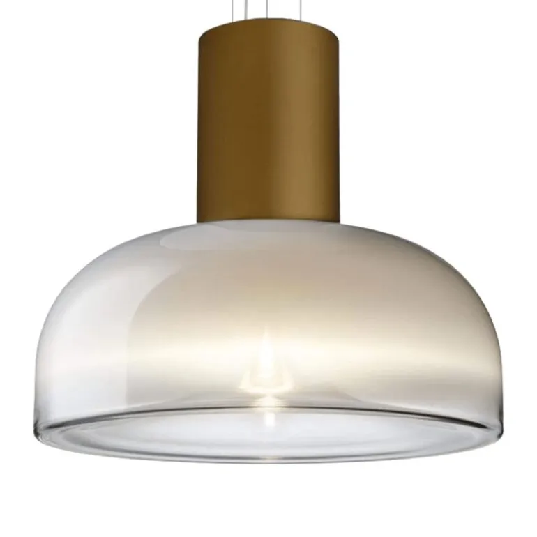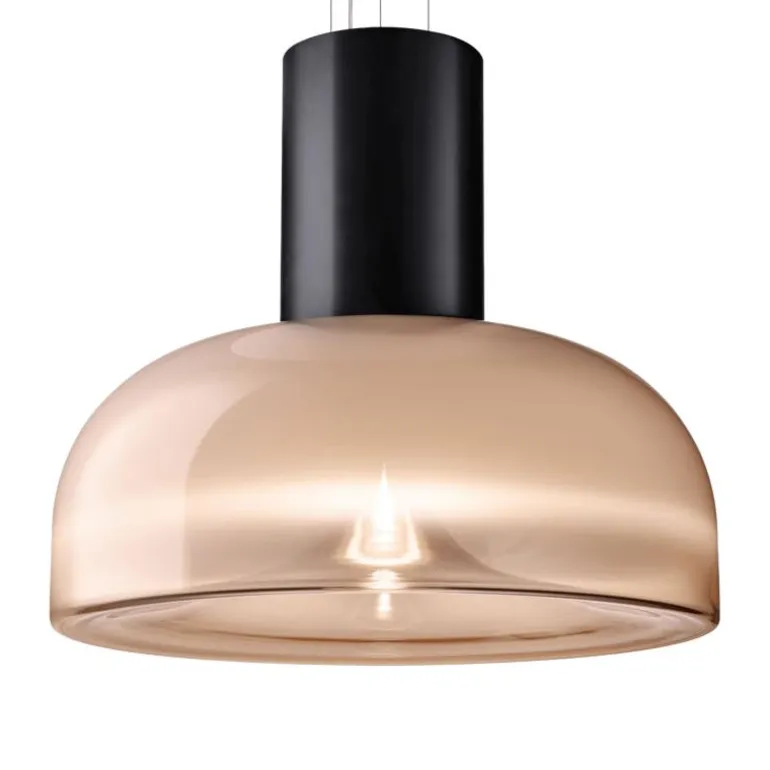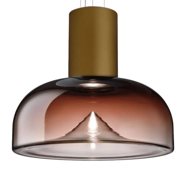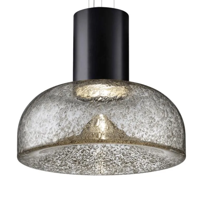 Het centrale element van de lamp is de handgeblazen glazen kap met een diameter van vijfenveertig centimeter. Vanuit een enkel lichtpunt ontstaat een lichtkegel die zich verspreidt in vloeiende patronen en zachte reflecties. Dit spel van licht en glas creëert een dynamische en warme ambiance die geschikt is voor uiteenlopende toepassingen. Of het nu gaat om een eetkamer, woonkamer of representatieve ruimte, de Aella S 45 L brengt een sfeer van luxe en harmonie die kenmerkend is voor exclusieve verlichting.