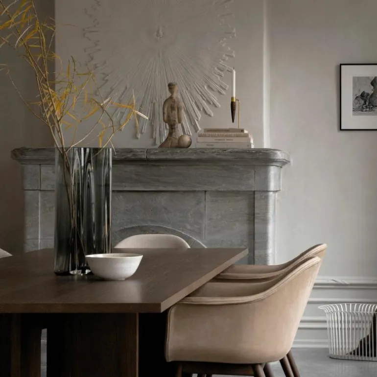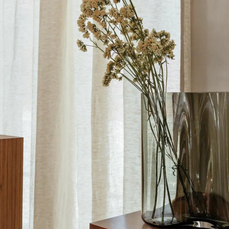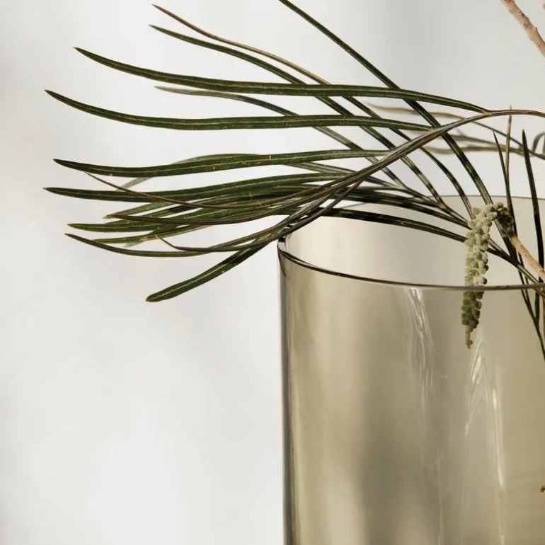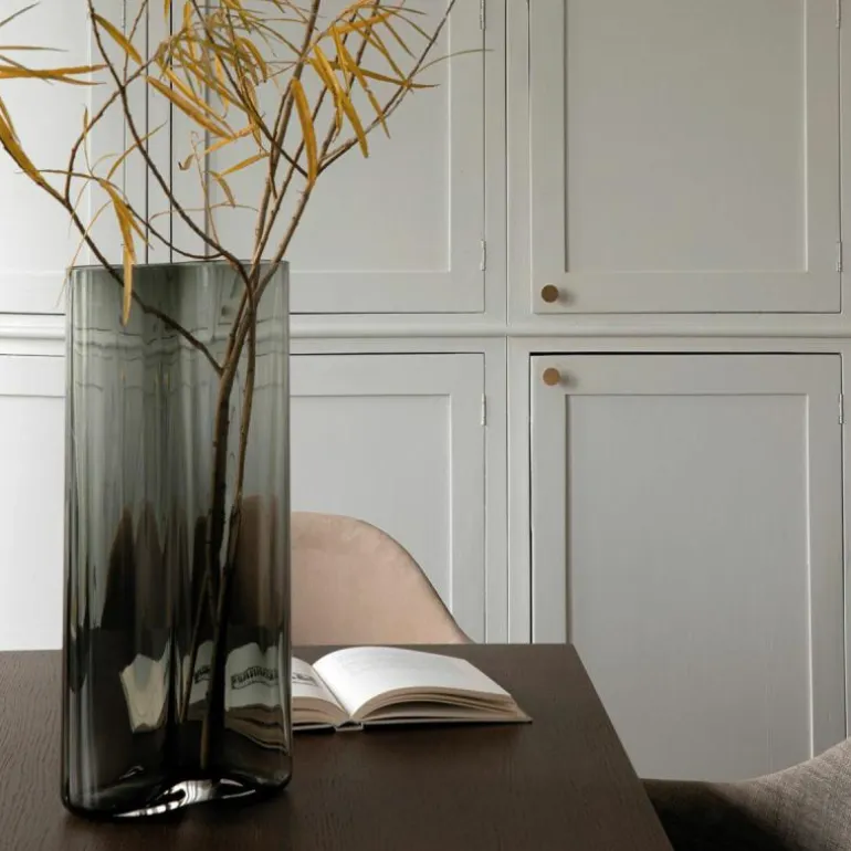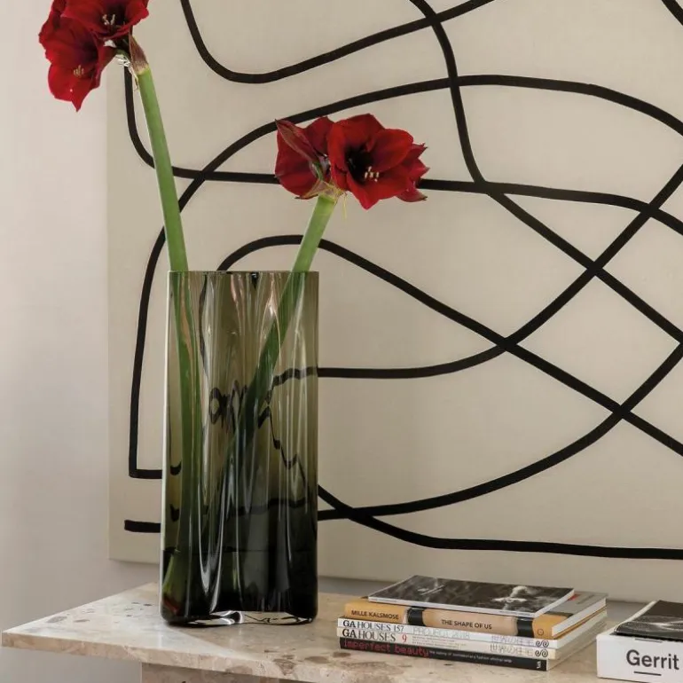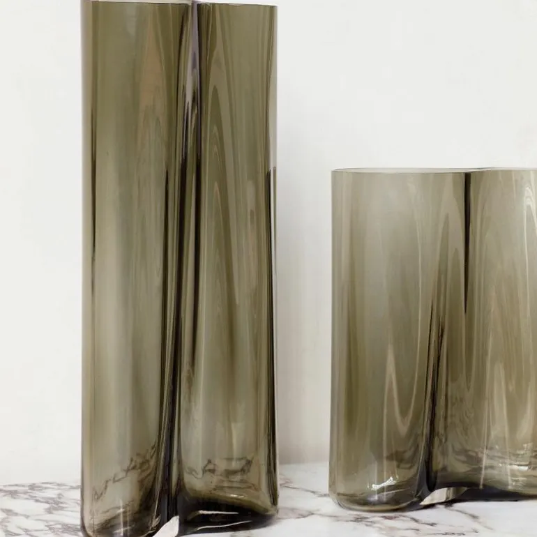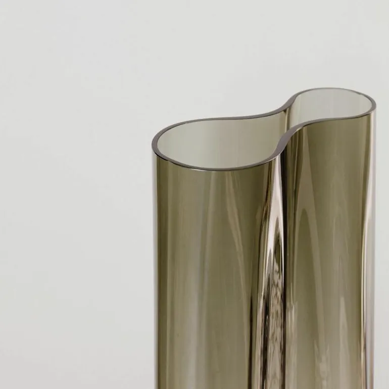 De Aer Vaas is gemaakt van mondgeblazen en gerookt glas. De vaas is verkrijgbaar in een hoge, slanke variant en een lage, bredere uitvoering. Deze zijn eventueel perfect met elkaar te combineren, om zo een volle setting te creëren.