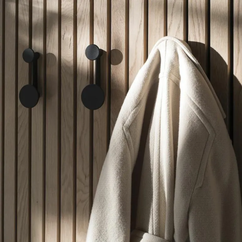 De Audo Copenhagen Afteroom Kapstok Small is een ontwerp van Afteroom Studio. Het simplistische design siert blanke wanden, maar biedt daarnaast plek voor uw jassen, tassen en andere alledaagse spullen. De kapstok maakt zichtbaar deel uit van de prachtige Afteroom familie. Zo worden ronde vormen herhaalt en vormt eenvoud het uitgangspunt. Bij het ontwerp is een ranke staaf van zink aan weerszijden voorzien van een ophangelement, in de vorm van een cirkel. Kies voor een Afteroom met een volledig zwarte poedercoating of ga voor de Afteroom waarbij de kleinste haak is verguld met messing. Beide varianten hebben – horizontaal – een hoogte van 4 centimeter, een breedte van 21 centimeter en een diepte van 7.4 centimeter. Met behulp van verborgen schroeven kunt u het ontwerp bovendien eenvoudig aan de muur bevestigen. Tip: het design komt zowel horizontaal als verticaal, maar ook in combinatie met meerdere Afterooms prachtig tot zijn recht. Bent u op zoek naar een grotere kapstok? Bekijk dan eens de originele Afteroom Kapstok. Deze is uitgerust met 6 haken. r
