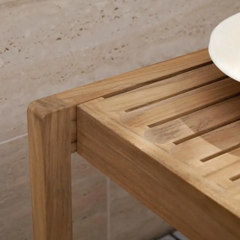De AH911 Outdoor Bijzettafel is geheel vervaardigd uit FSC-gecertificeerd teakhout waardoor de tafel zeer geschikt is voor buitengebruik. Het teakhout is onbehandeld, omdat teakhout van zichzelf al veel beschermende oliën bevat en daardoor tegen verschillende weersinvloeden bestand is. De tafel heeft een lengte van 59,5 centimeter, een breedte van 48,5 centimeter en een hoogte van 45 centimeter. Niet alleen functioneert het ontwerp als bijzettafel, maar ook als extra zitgelegenheid. Voor de liefhebber van extra zitcomfort is het houten ontwerp te verrijken met een los zitkussen dat erbij te bestellen is.