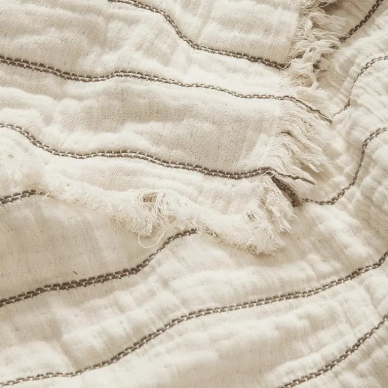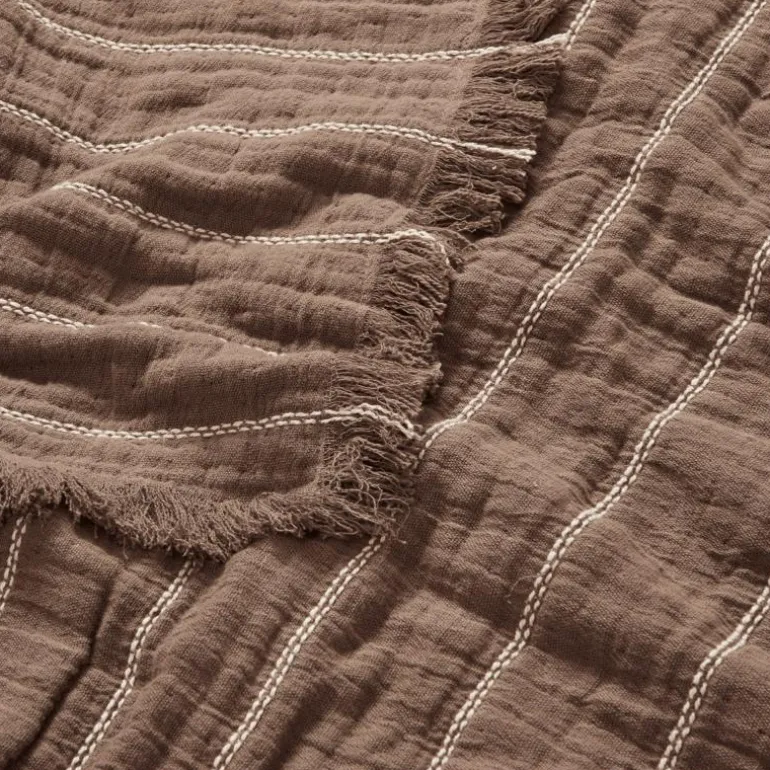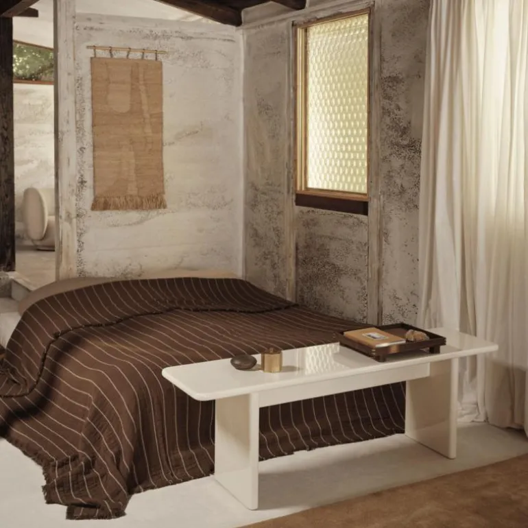 De bedsprei onderscheidt zich door zijn ingetogen uitstraling en verfijnde details. Een fijn geweven contraststreep en subtiele franjes langs de randen versterken de visuele aantrekkingskracht zonder dat het ontwerp overdadig wordt. Dit maakt de Aires Bedsprei geschikt voor uiteenlopende interieurstijlen. In een moderne slaapkamer voegt het een kalm en evenwichtig accent toe, terwijl het in een klassiek interieur juist bijdraagt aan een warme, uitnodigende sfeer.