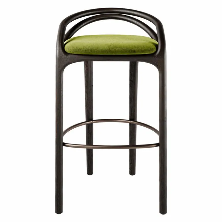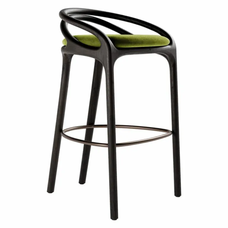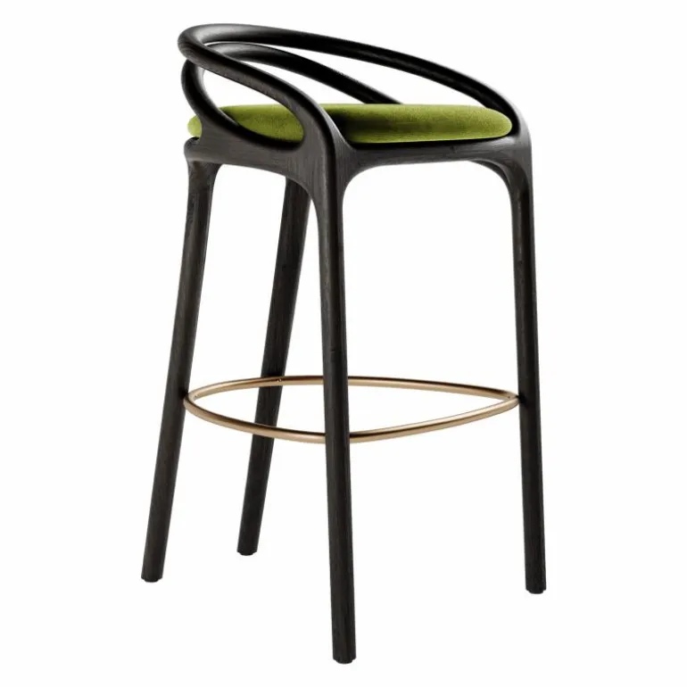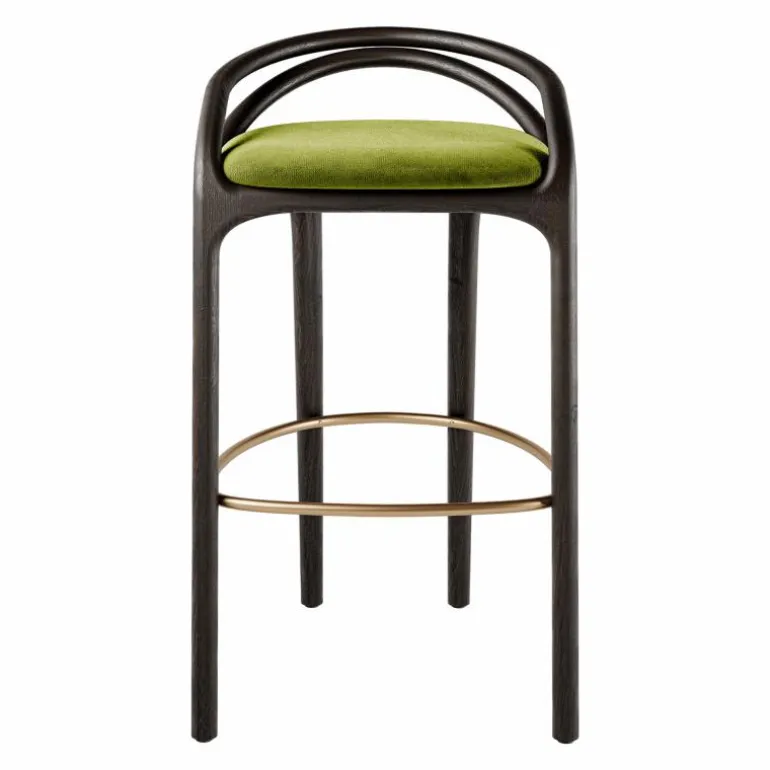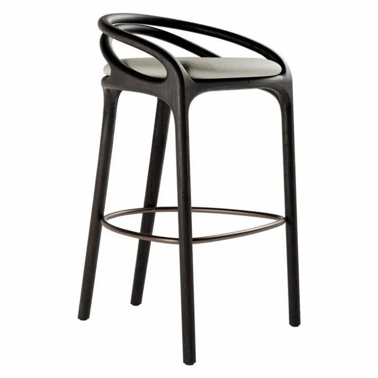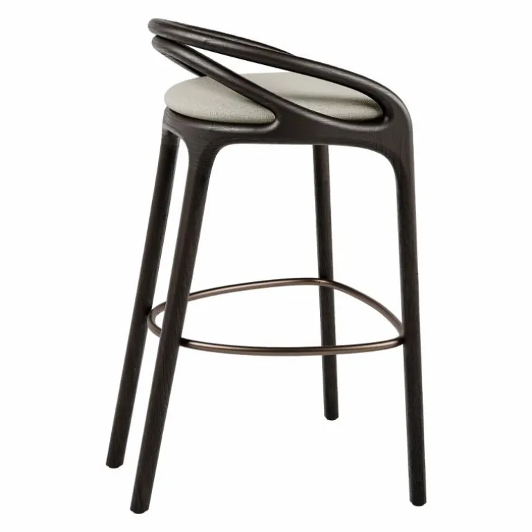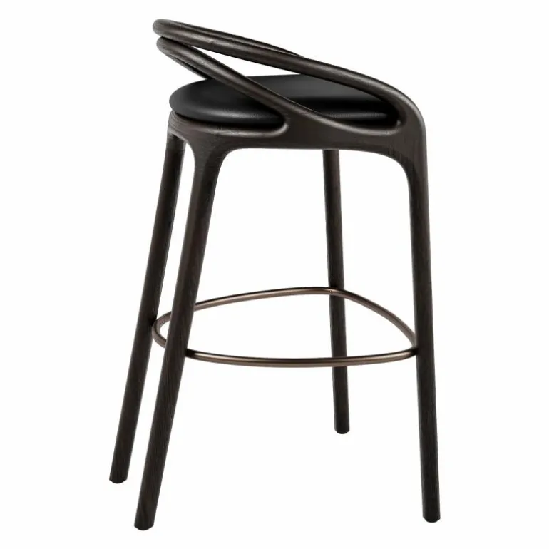 Het ontwerp onderscheidt zich door de subtiele combinatie van functionaliteit en verfijning. De barkruk heeft een lichte, open uitstraling en behoudt tegelijkertijd de structurele stabiliteit die nodig is voor dagelijks gebruik. De aandacht voor detail komt tot uiting in de zorgvuldige afwerking, de zachte overgang tussen zitting en rugleuning en de naadloze integratie van materialen.