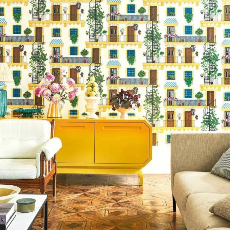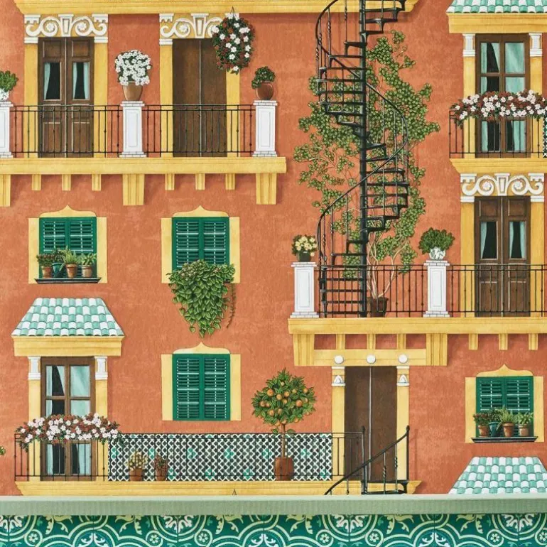 Het Cole & Son Alfaro Behang is een ontwerp van Cole & Son Studio en behoort tot de Seville collectie. Deze kleurrijke collectie vangt de uitbundigheid van de Andalusische hoofdstad Sevilla, die door jarenlange culturele inmengingen van diverse kolonisten, unieke ambachten en nieuwe tradities een onuitwisbare indruk achterlaat. Een van de gebouwen in Sevilla, de residentie Plaza Alfaro, zou de beroemde balkonscéne in Romeo en Julia van Shakespeare hebben geïnspireerd. Dit gebouw met zijn balustrades van smeedijzer en kleurrijke flora wordt prachtig neergezet op het Plaza Alfaro behang, een ode aan de schitterende Sevilliaanse architectuur! In maar liefst drie prachtige tinten kunt u uw muur voorzien van romantische Spaanse balustrades. r