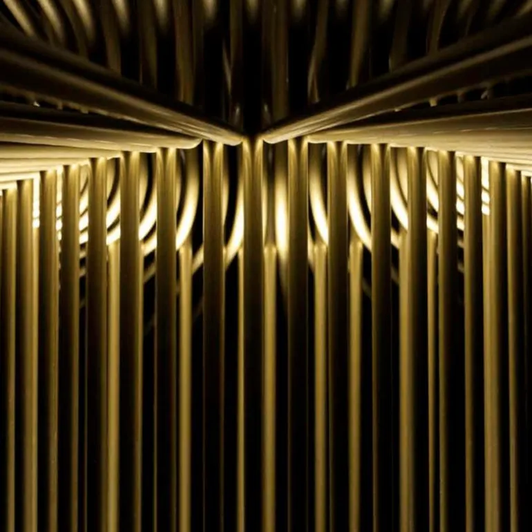 De Allegro Assai is gemaakt van gelakt staal en is verkrijgbaar in een goudkleurige uitvoering. r