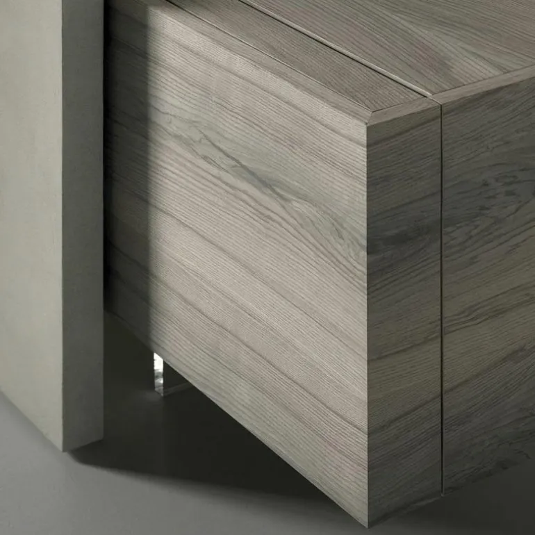 Voor de kast en draaideuren heeft u de keuze uit thermisch behandeld fineer in ‘Eucalyptus’, ‘Eucalyptus Black’, ‘Swamp Oak’, ‘Swamp Ash’ of glanzend (Glossy) of matte afwerking in verschillende lakkleuren. De binnenzijde is altijd in fineer bij de houten versies en gelakt bij de varianten in lak. Het ‘Swamp’ fineer is een speciale soort hout dat is verkregen uit stammen die onder de grond zijn gevonden, waar ze honderden jaren onder kleilagen bewaard zijn gebleven. Het lange natuurlijke proces dat dit hout is ondergaan is niet na te maken, en geeft de kast een unieke uitstraling met verrassende kleuren en texturen.r