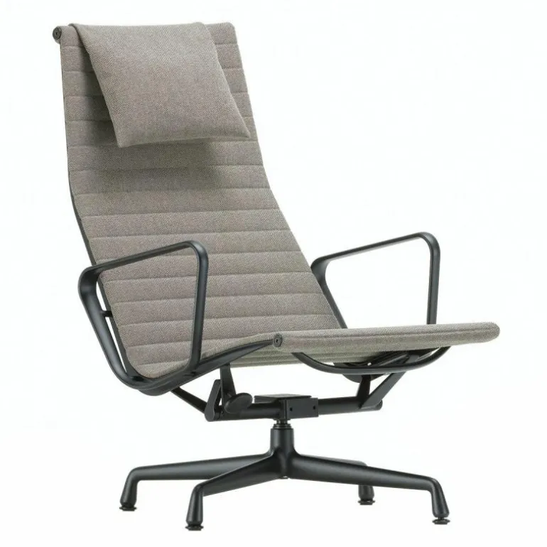 Type EA 124 is de Loungestoel bij uitstek in de Aluminium Group. De hoge rugleuning, het hoofdkussen en het kantelmechanisme dat op gewicht van de gebruiker kan worden ingesteld, zorgen voor een subliem comfort. De loungestoel is 65 centimeter breed, 98.5 centimeter hoog en 78 centimeter diep. De zithoogte bedraagt 30.5 centimeter. Combineer de draaibare EA 124 met de bijbehorende voetenbank (EA 125) om het plaatje compleet te maken.r