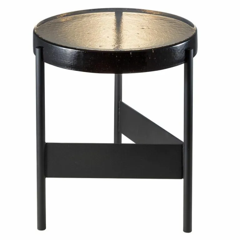 De tafelbladen van de Alwa Bijzettafels zijn maar liefst 5 centimeter dik. Het duurt dagen om dit glas volledig uit te laten harden. Het unieke tafelblad, dat in meerdere kleuren verkrijgbaar is, wordt bij deze variant ondersteund door een strak vormgegeven zwart metalen frame met drie dunne pootjes die contrasteren met het tafelblad.r