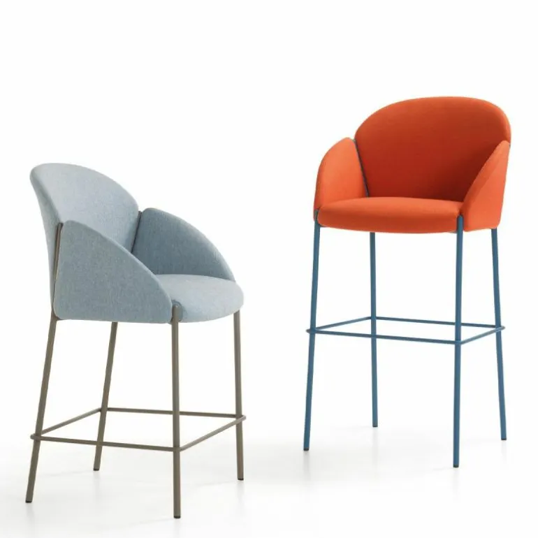 De zitkuip wordt gevormd met multiplex dat rijkelijk is bekleed met vormschuim dat de kruk zijn hoge comfort geeft. De aluminium poten zijn afgewerkt met een matte of glanzende poedercoating in een kleur naar keuze. Voor een uitgebalanceerde look kunt u kiezen voor een zitkuip en poten in dezelfde kleurtinten. Liever een speelse uitvoering van de barkruk? Kies dan voor een combinatie van poten en een zitkuip in verschillende kleuren. De barkruk is verkrijgbaar met twee verschillende zithoogtes, namelijk 61 of 81 centimeter hoog. r