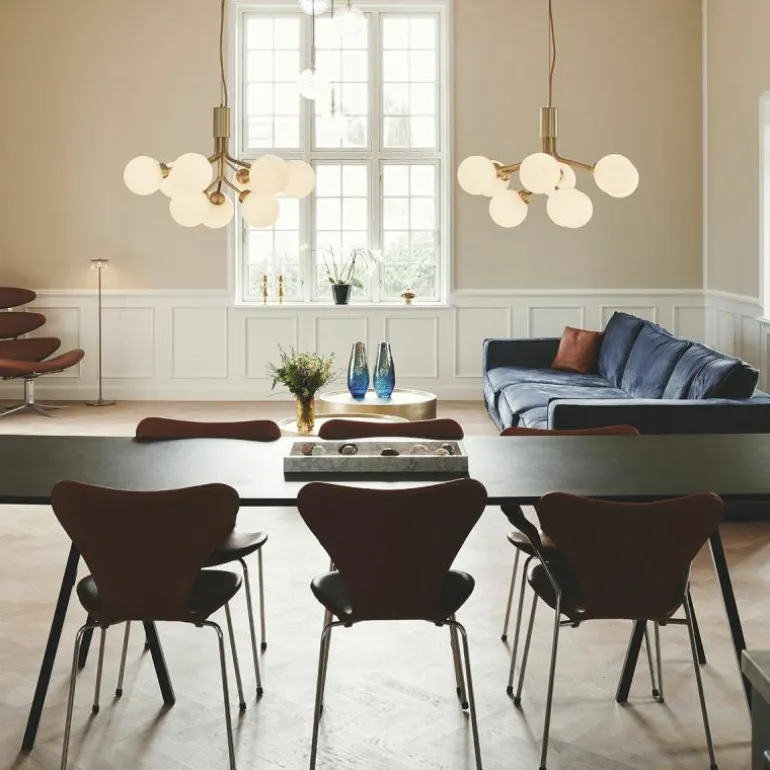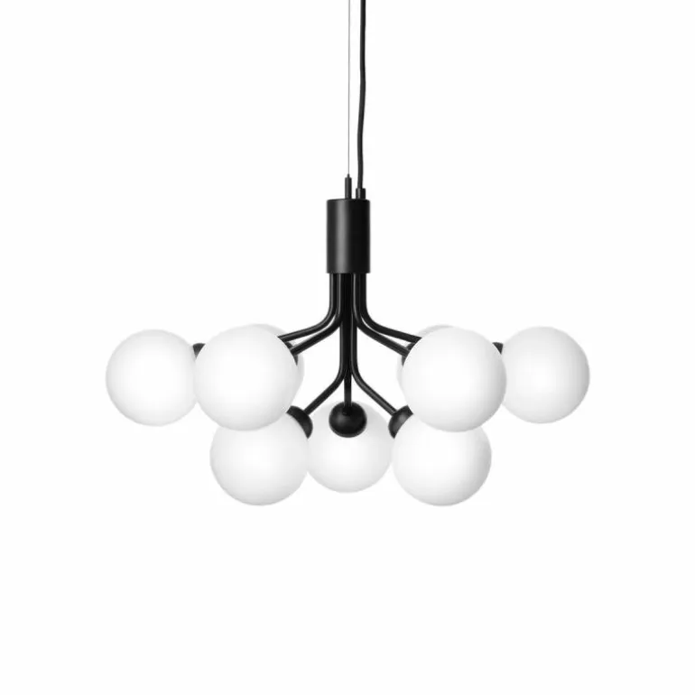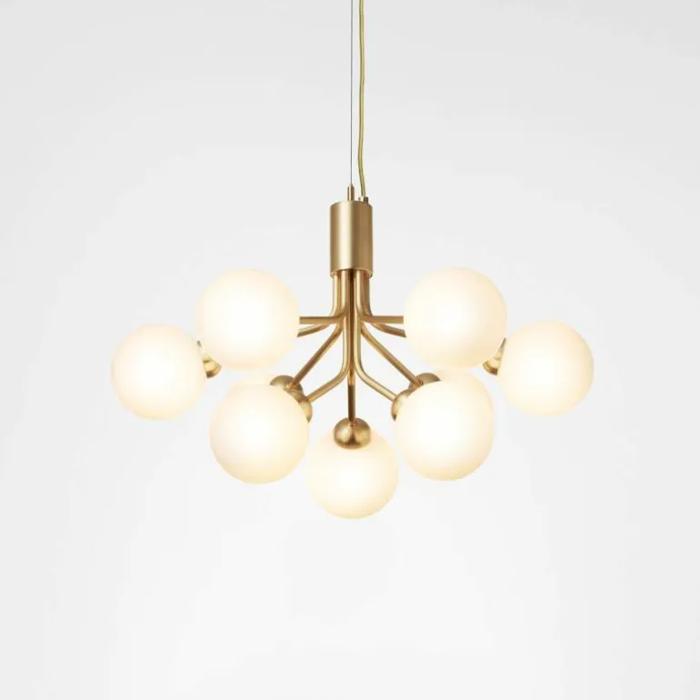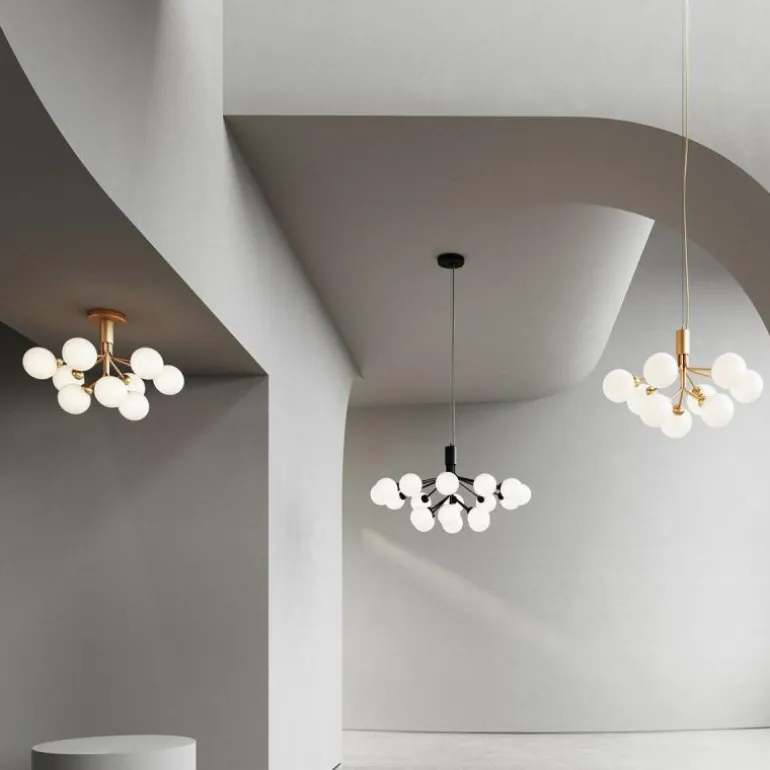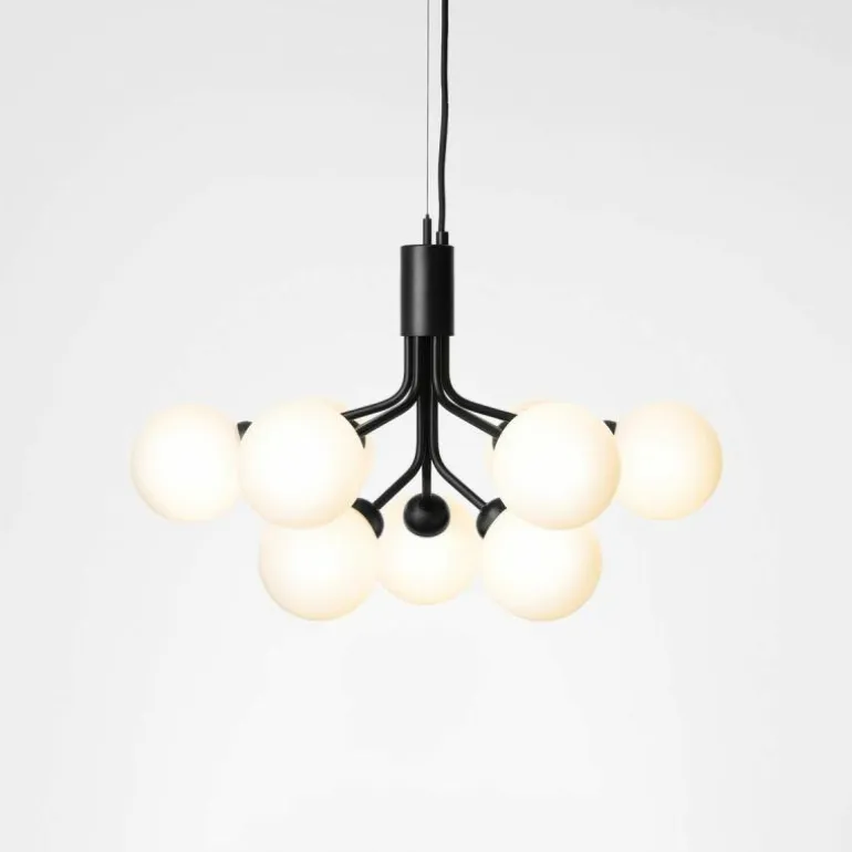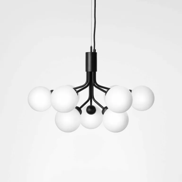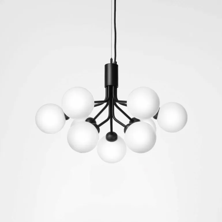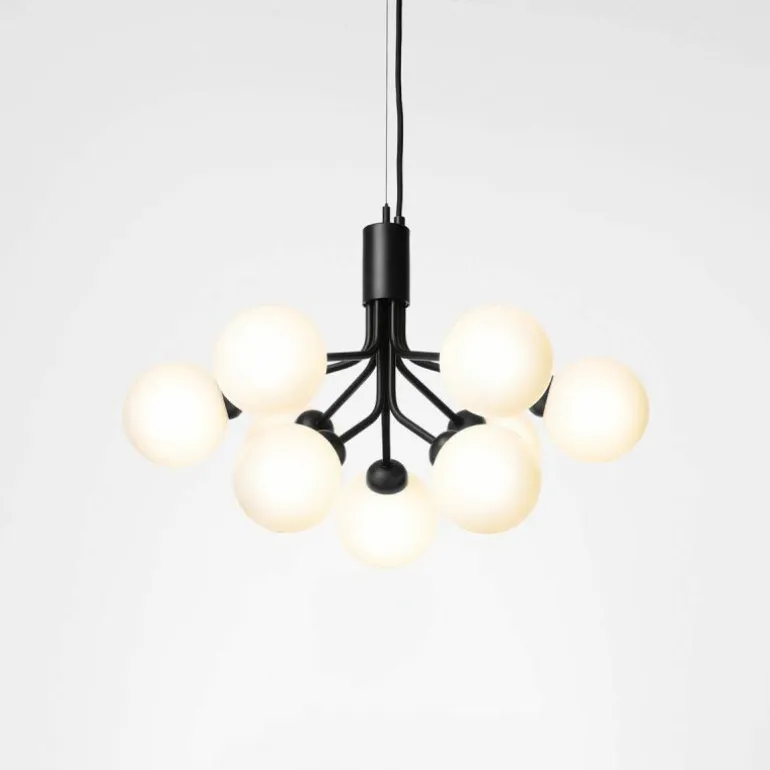 Naast deze negendelige kroonluchter is de Apiales ook verkrijgbaar in een plafondlamp en een achttiendelige kroonluchter. Alle leden van de Apiales familie kunt u terugvinden bij de productfamilie.