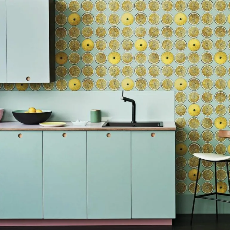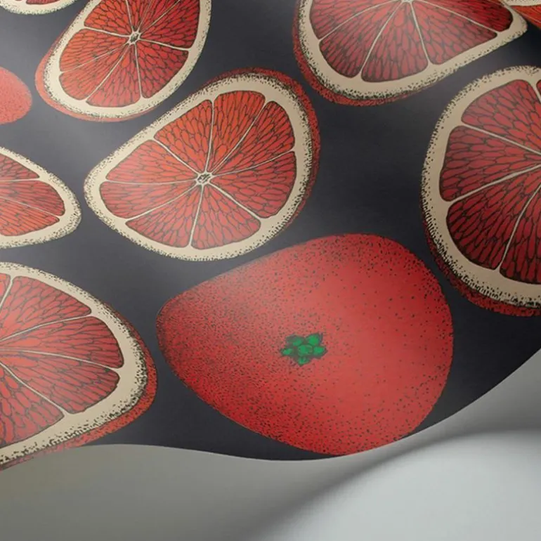 ‘Arance’ is Italiaans voor sinaasappels en de meterslange sinaasappelgaarden die in Italie te vinden zijn, worden mooi weerspiegeld in dit kleurrijke design van Fornasetti. Het vruchtbare thema was in de jaren ’50 voor het eerst te zien op het dienblad ‘Fette d’arancia’, waarna Barnaba Fronasetti deze in de jaren 90 in grafische stoffenprint opnieuw uitbracht. Dit overheerlijke patroon is geproduceerd in drie levensechte citrusvrucht-kleuren en is gedrukt op vliesbehang.r