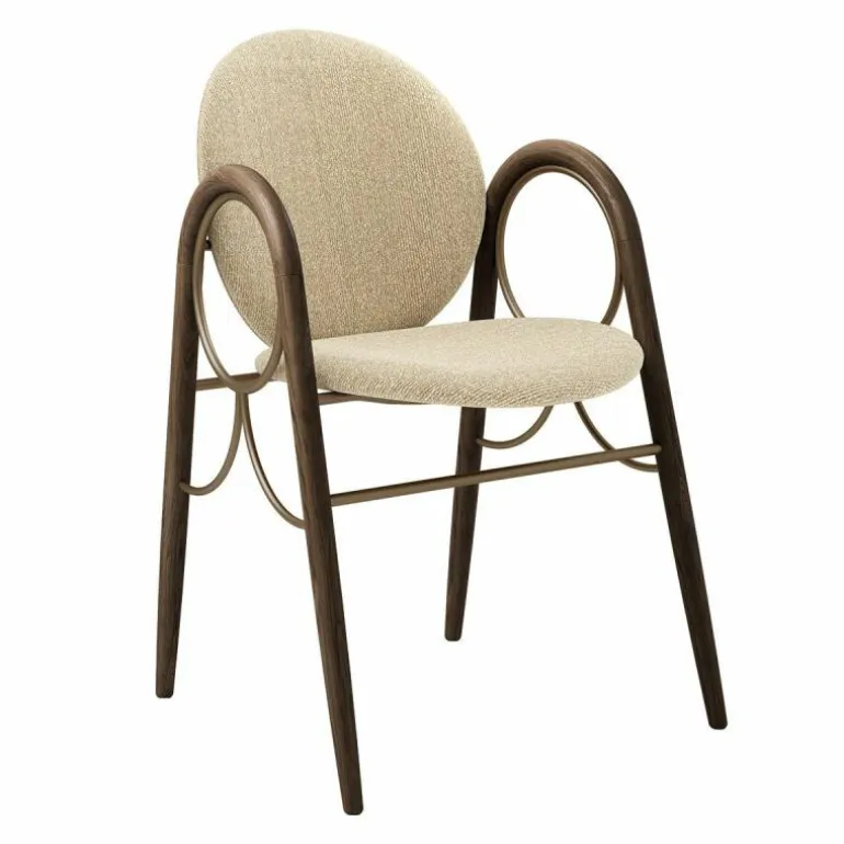 De Arkade Stoel is, trouw aan Ditzels voorliefde voor kleuren en decoratie, in een breed spectrum aan materialen beschikbaar. Naast dat de stoel verkrijgbaar is in gerookt eiken is de stoel ook verkrijgbaar in geolied eiken en wit geolied eiken. De stoel is tevens uit te voeren met een metalen frame met drie verschillende afwerkingen: zwart, messing en chroom. Tot slot is er een breed scala aan mogelijkheden wat betreft de bekleding. Houd het klassiek met een compleet houten Arkade Stoel, ga voor een extra comfortabele zitting met een stoffering van Kvadrat of kies een uitvoering met een stoere bekleding van Sørensen leder. De stoel is 59,5 centimeter diep, 55,4 centimeter breed en 83 centimeter hoog. De zithoogte is 46,5 centimeter.r
