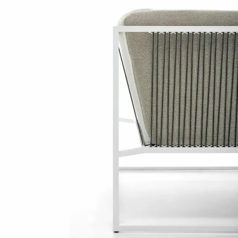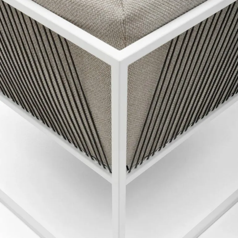 Het grafisch gevormde frame is gemaakt van roestvrijstaal en voorzien van epoxypoeder en is daardoor tegen weer en wind bestand. Ook het koord dat bestaat uit zeer sterk polyester en de zitkussens, gemaakt van Dryfeel, zijn bestand tegen de verschillende weersinvloeden. Om deze reden is de fauteuil uitstekend geschikt voor zowel binnen- als buitengebruik. Hierdoor kunt u op iedere gewenste plek genieten van uw Arpa Outdoor Fauteuil. r