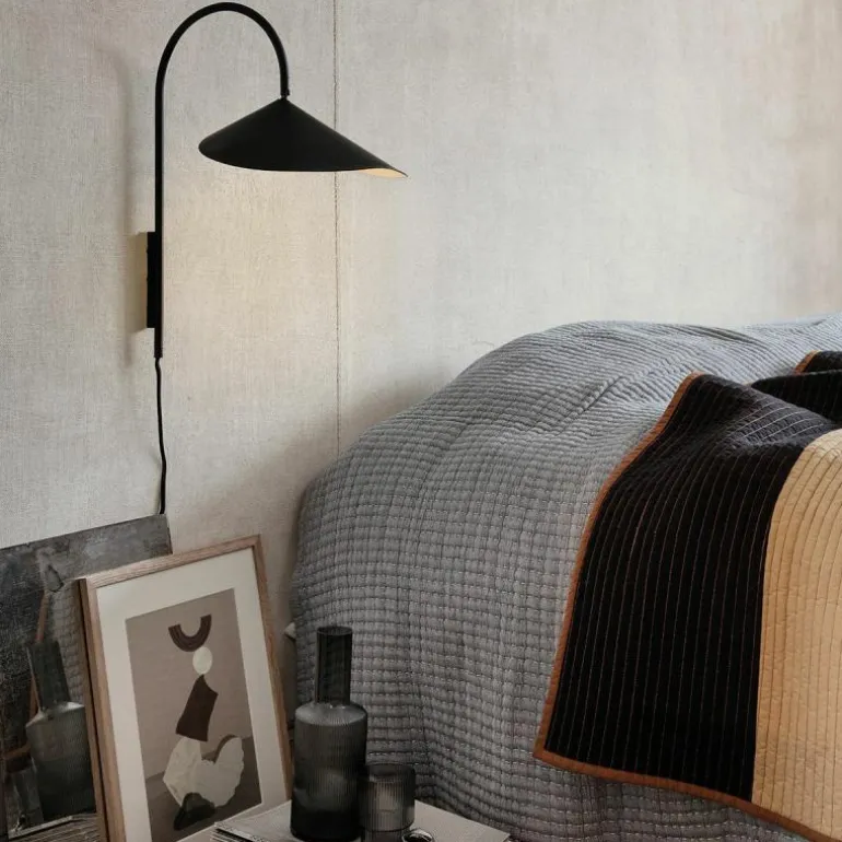 De Ferm Living Arum Wandlamp is een ontwerp van Trine Andersen. Het design is geïnspireerd op de vorm van de gelijknamige plant, die wij beter kennen als de Aronskelk. Kenmerkend is de organisch gevormde lampenkap, die op natuurlijke wijze aan het gebogen frame hangt, gelijkend een blad aan een tak. r