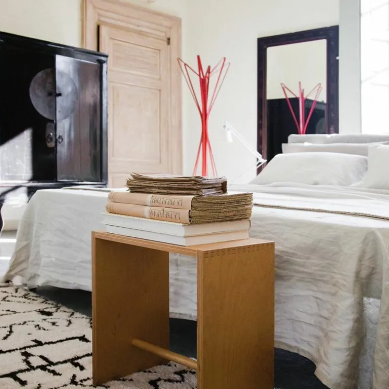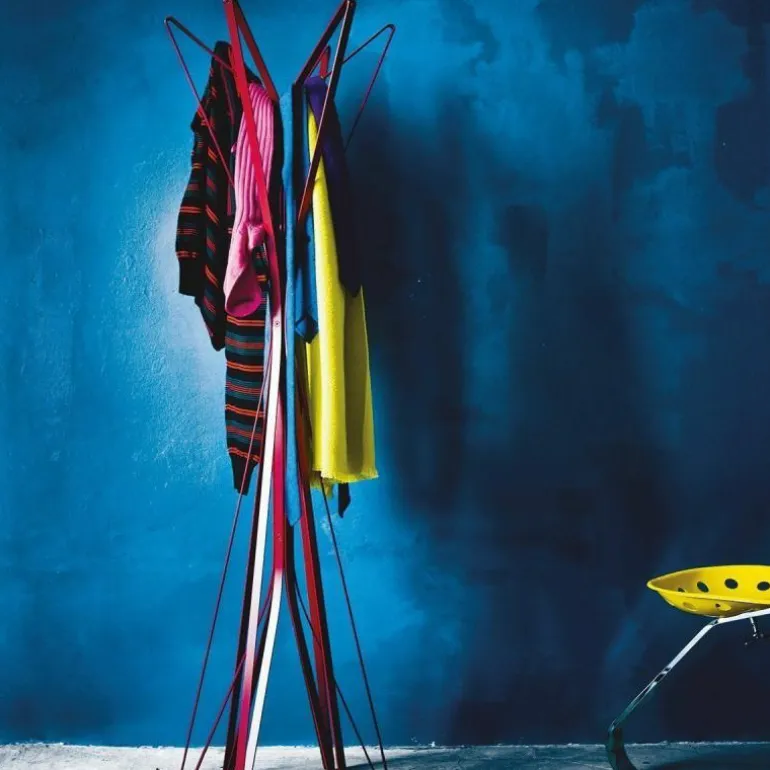 De Zanotta Aster Kapstok is een ontwerp van Alessandro Dubini. Het design uit 2010 ontleent zijn naam aan de gelijknamige bloem en wanneer u de kapstok van boven bekijkt, snapt u waarom. Dan ziet u hoe de stalen elementen uit het centrumpunt ontspringen, net als de langwerpige blaadjes van de asterbloem. Toch heeft de kapstok ook een heel ander uitstraling. Door de hoekige, heldere vormen van het stalen frame, heeft de kapstok namelijk juist ook een statig karakter. Zo vormt dit design een minimalistisch statement in ieder interieur.r