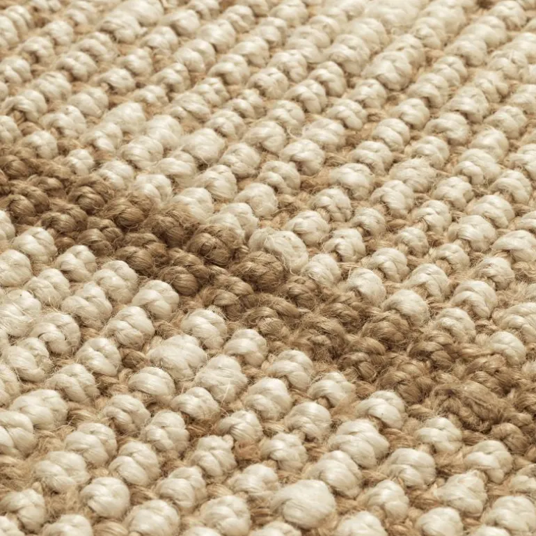 Het kleed is vervaardigd uit pure jute, een natuurlijk materiaal dat bekendstaat om zijn stevigheid en duurzaamheid. Door het ambachtelijke weefproces ontstaat een rijke structuur die tastbaar aanwezig is en de vloer direct een gelaagd karakter geeft. De vezels zorgen niet alleen voor een robuust geheel, maar brengen ook een natuurlijke uitstraling die moeiteloos aansluit bij zowel moderne als meer traditionele woonstijlen. De combinatie van materiaal en handwerk maakt ieder kleed uniek en garandeert een lange levensduur.