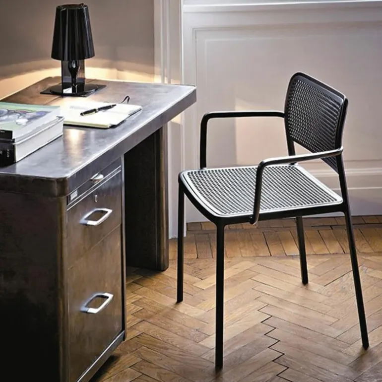 De Kartell Audrey Armtoel ontworpen door de internationaal bekroonde Italiaanse architect en designer Piero Lissoni. In Nederland is het werk van Lissoni onder meer te zien in het Conservatorium Hotel in het Amsterdamse Museumkwartier, dat in 2012 van voormalig monumentaal conservatorium werd verbouwd tot vijf-sterrenhotel en publieke ruimte. Voor Kartell ontwierp hij meerdere memorabele productlijnen, zoals Plastics en de Piuma-stoelen.r
