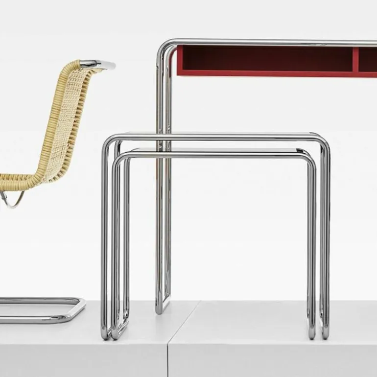 Als producent zorgde Thonet ervoor dat de meubelen wereldwijd konden worden verkocht. Vanaf de jaren ‘20 van de vorige eeuw ontstond een reeks eigen ontwerpen, waaronder wandtafel B108. De tafel is gemaakt van een stalen buizenframe met een MDF tafelblad. De strakke vormgeving van B108 is tot op de dag van vandaag geliefd in moderne interieurs.