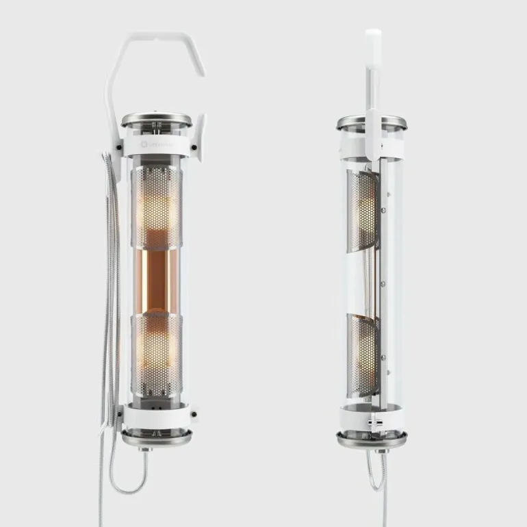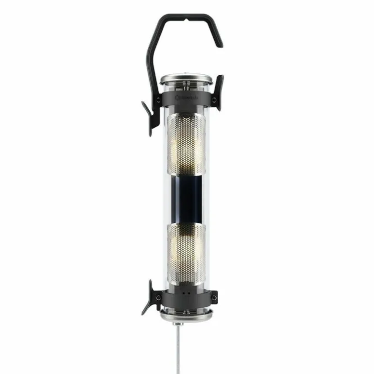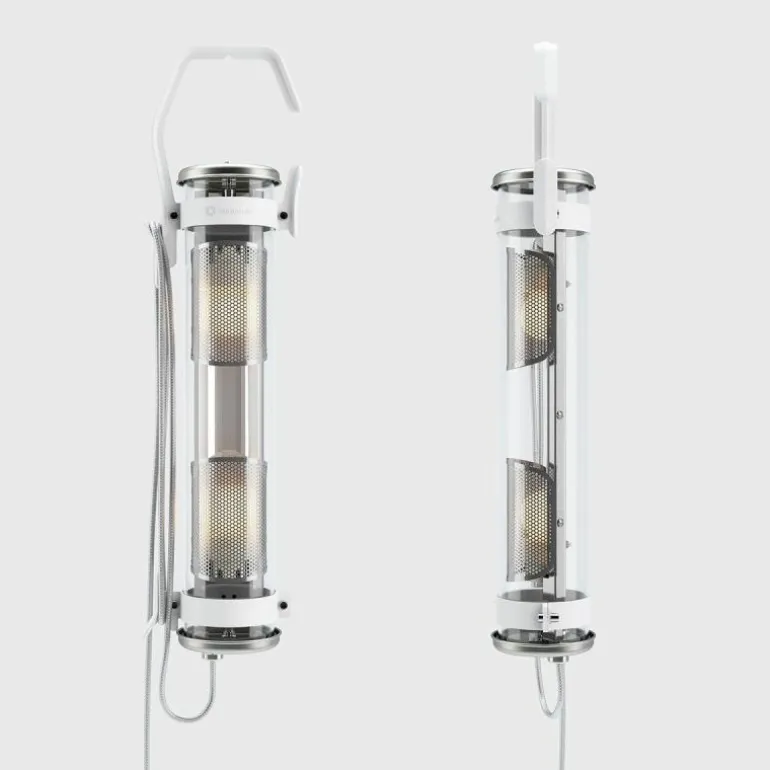 Een haak aan de muur, aan een kledingrek, een gespannen kabel of een tak van een boom, de Balke lamp kan gemakkelijk overal worden opgehangen en naar een nieuwe hangplaats worden gedragen door de ruime haakvorm op de bovenkant van de lamp. Het haakelement en de ring onderaan de buis is verkrijgbaar in verschillende kleuren. De schakelaar zit aan het uiteinde van de buis en dit is tevens ook de knop waarmee het warm witte licht van 2700K te dimmen is. r
