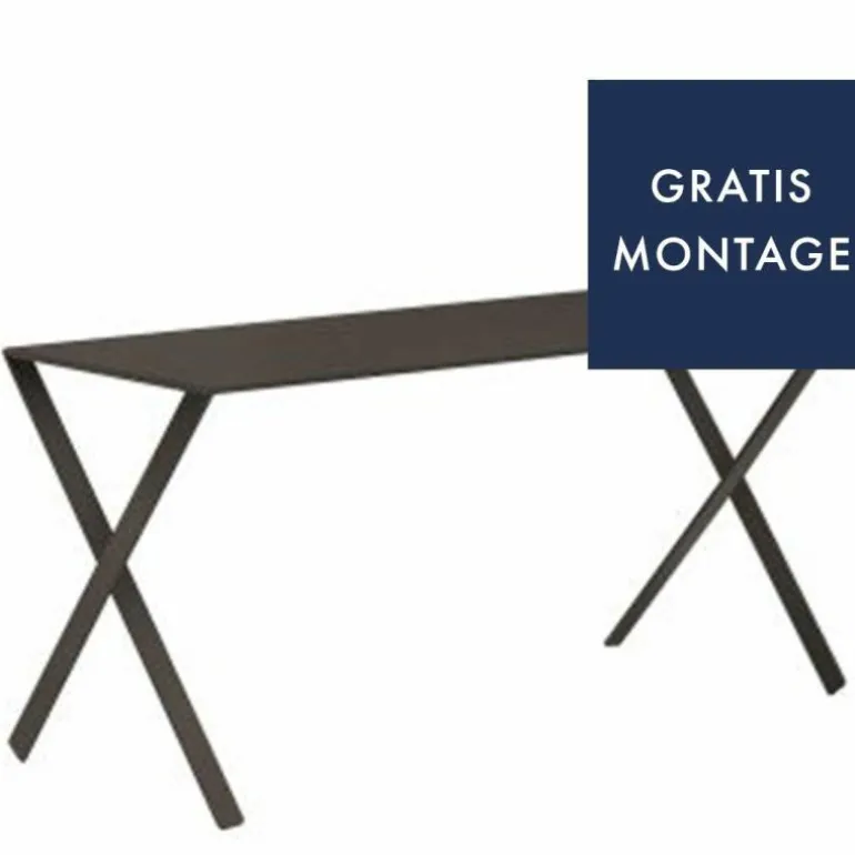 Het bureau is 150 centimeter breed, 60 centimeter diep en 73 centimeter hoog. Het bureaublad bestaat uit een lasergesneden aluminium plaat die aan de zijkanten omgevouwen is om extra stevigheid te bieden. Het onderstel is vervaardigd uit aluminium wat geëxtrudeerd is. Dit houdt in dat het materiaal in een mal gegoten wordt en vervolgens geperst is om het onderstel vorm te geven. Het resultaat is een stevige basis. Onder de poten is zwart rubber bevestigd om beschadiging tegen te gaan. Het bureau heeft een gekleurde lak gekregen waarbij u kunt kiezen uit de kleuren wit of zwart. r