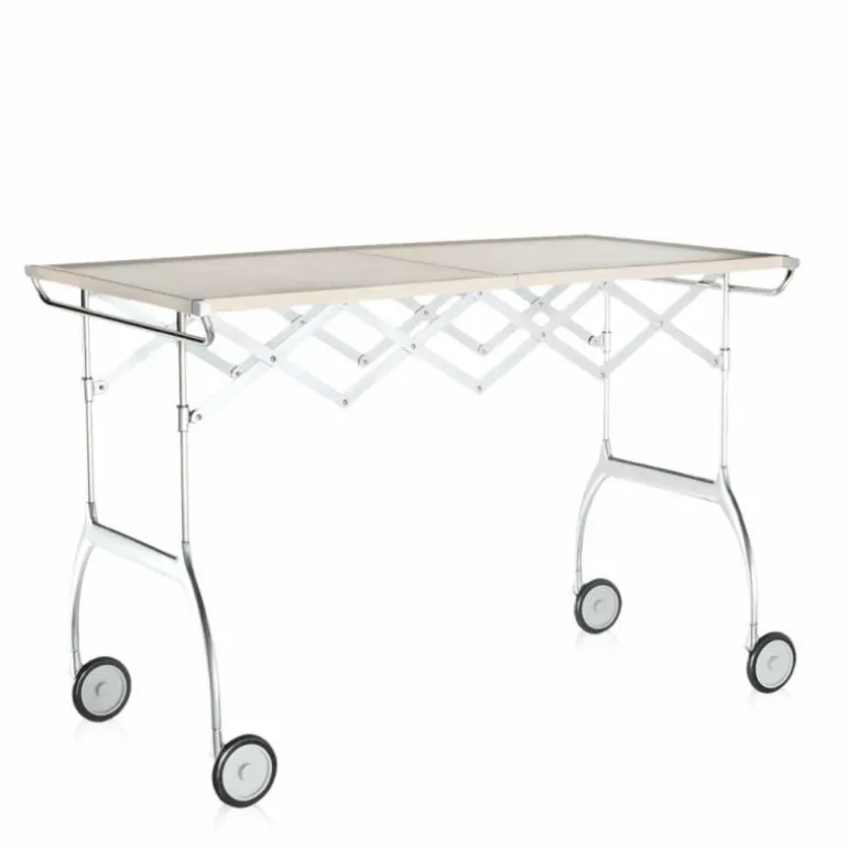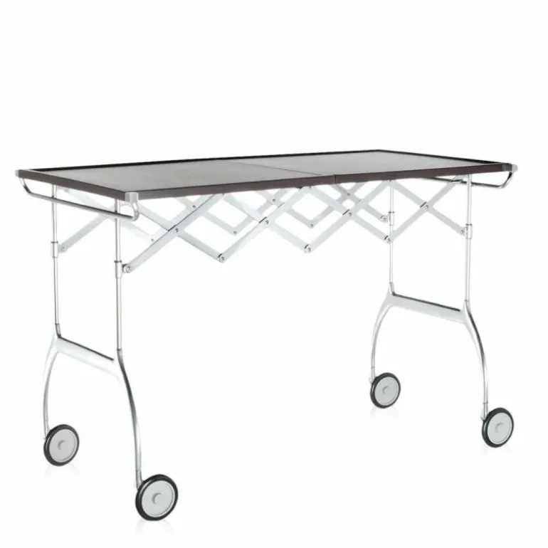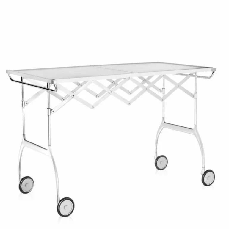De Battista is niet alleen een praktische trolley, gekenmerkt door een geslaagde combinatie van plastic en metalen onderdelen, maar ook een volledig uitschuifbare en opvouwbare tafel, ideaal voor buffetten en drankjes, of als een kleine afzonderlijke tafel.r