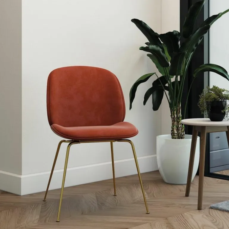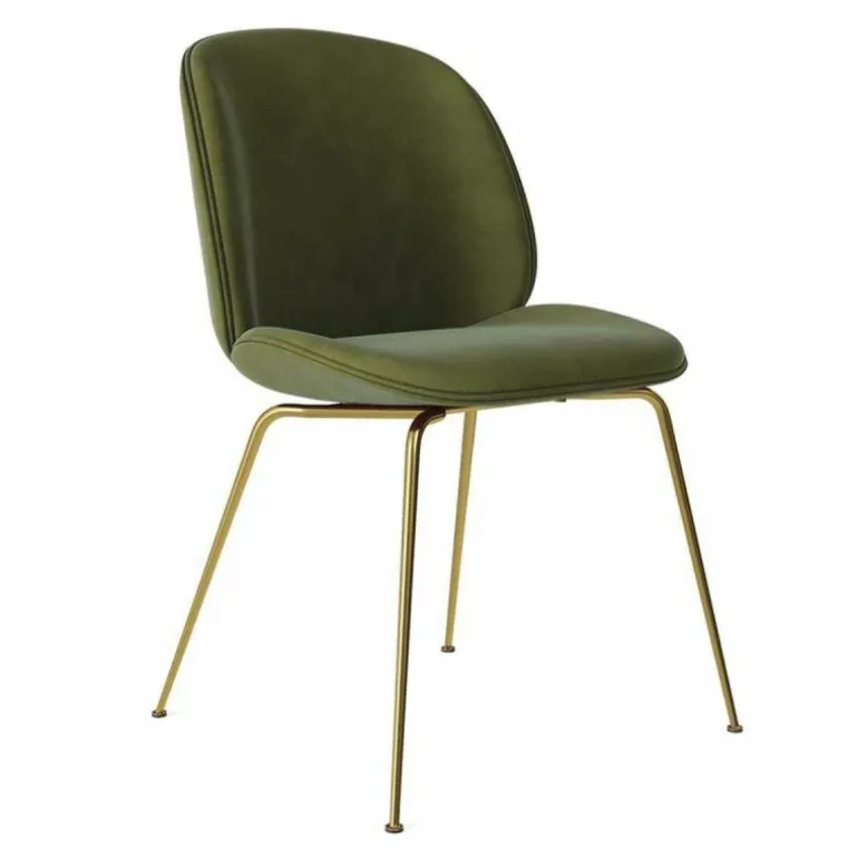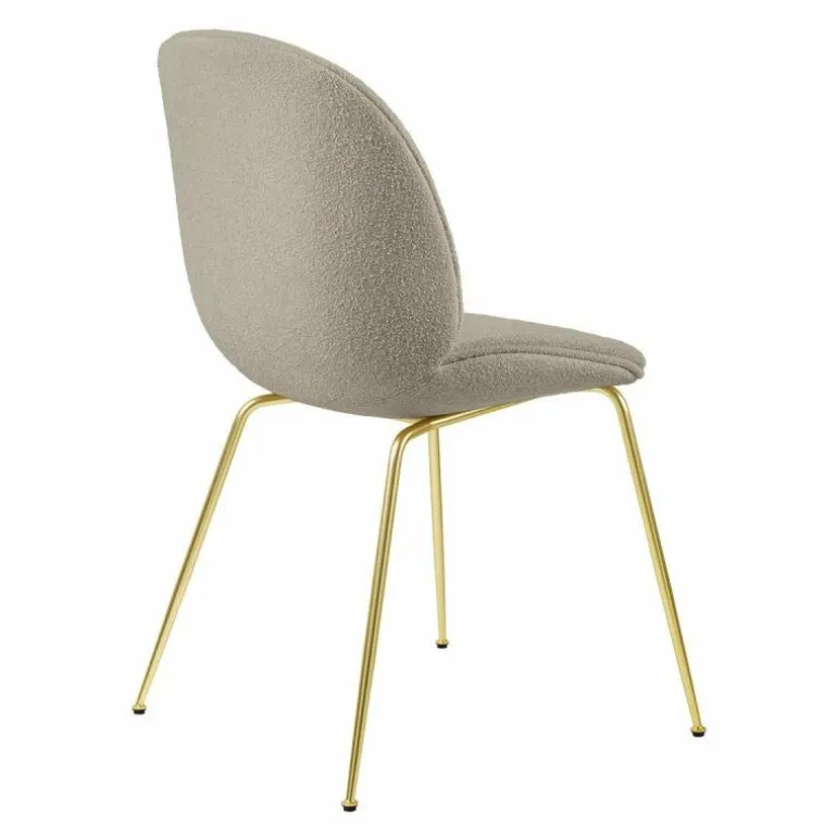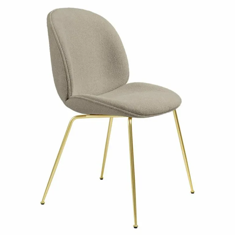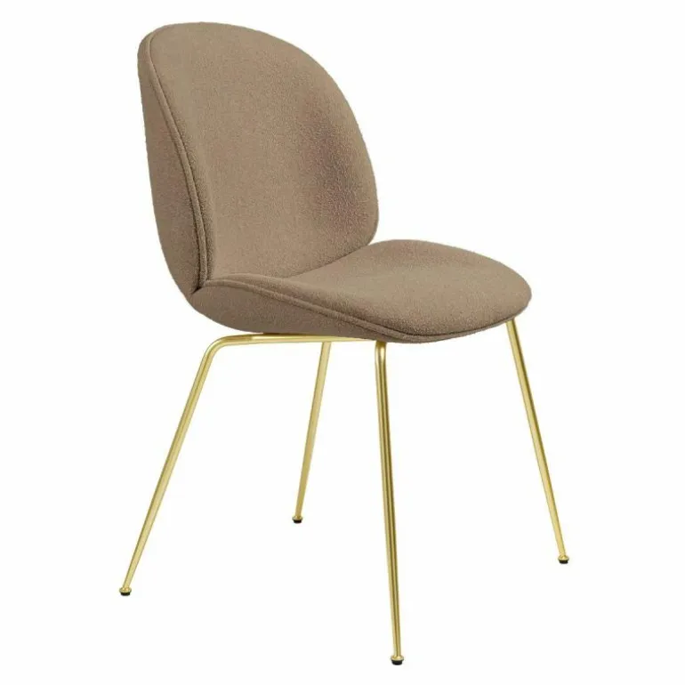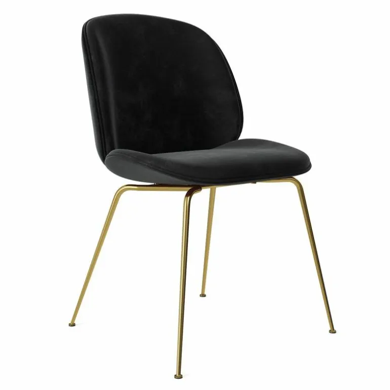 De Gubi Beetle Stoel ontworpen door GamFratesi voor Gubi is een prachtige combinatie tussen Italiaans en Deens design. De stoel is voorzien van een metalen onderstel in matzwart of messing. Zowel de zitting als de rugleuning is afgewerkt met een bijzonder aangenaam detail, namelijk een rand van leer. Wat betreft bekleding van de stoel heeft u een uitzonderlijke ruime keuze uit verschillende stof- en leersoorten in vele verschillende kleuruitvoeringen.