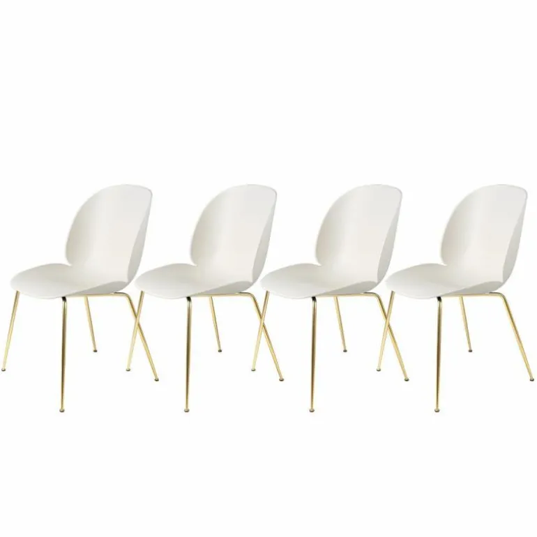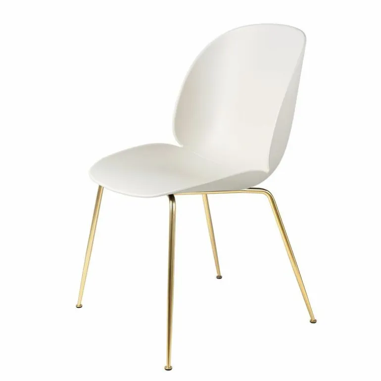 De Beetle Un-upholsterd Stoel Brass Base behoort tot de veelzijdige collectie van Gubi. Het luxueuze Deense label werkt veelvuldig samen met GamFratesi. De Deense Stine Gam en Italiaanse Enrico Fratesi vinden hun creativiteit door hun culturele achtergronden met elkaar te verweven. Klassieke kenmerken uit Denemarken worden zo gecombineerd met ambachtelijke tradities uit Italië. Het resultaat is telkens weer verbluffend. Niet voor niets heeft GamFratesi al vele designs voor Gubi mogen ontwerpen.