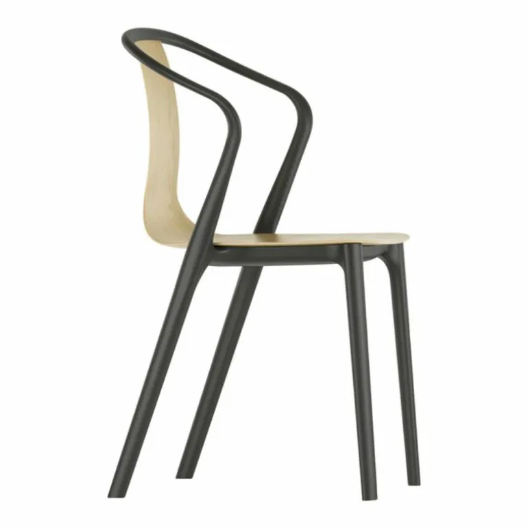 De Belleville Chair is opgebouwd uit twee delen: een frame en een zitschaal. Het slanke zwarte frame ondersteund een zeer dunne schaal die vanaf het brede zitoppervlak taps toeloopt in een smalle rugleuning. Door deze geavanceerde constructie worden nieuwe perspectieven geboden wat betreft materialen van de stoel. r