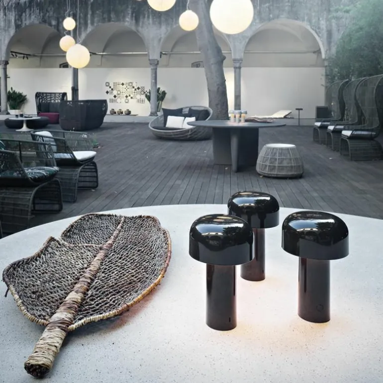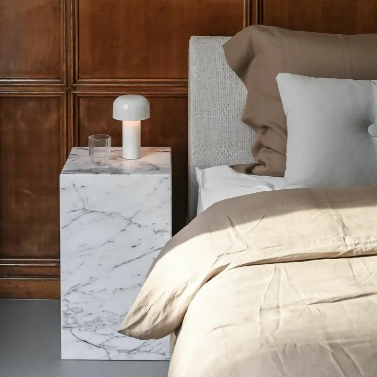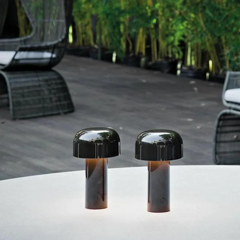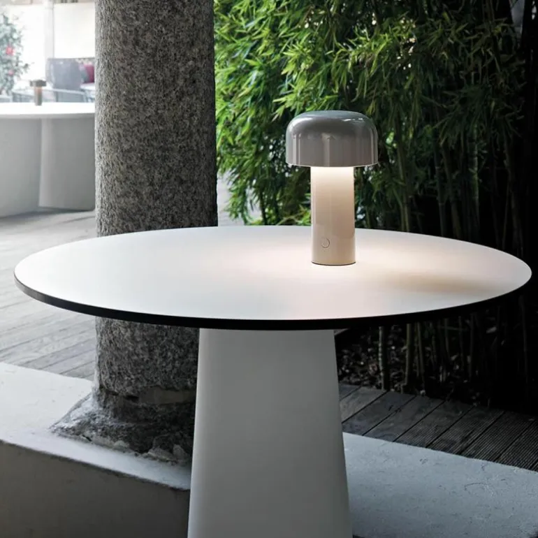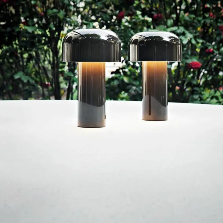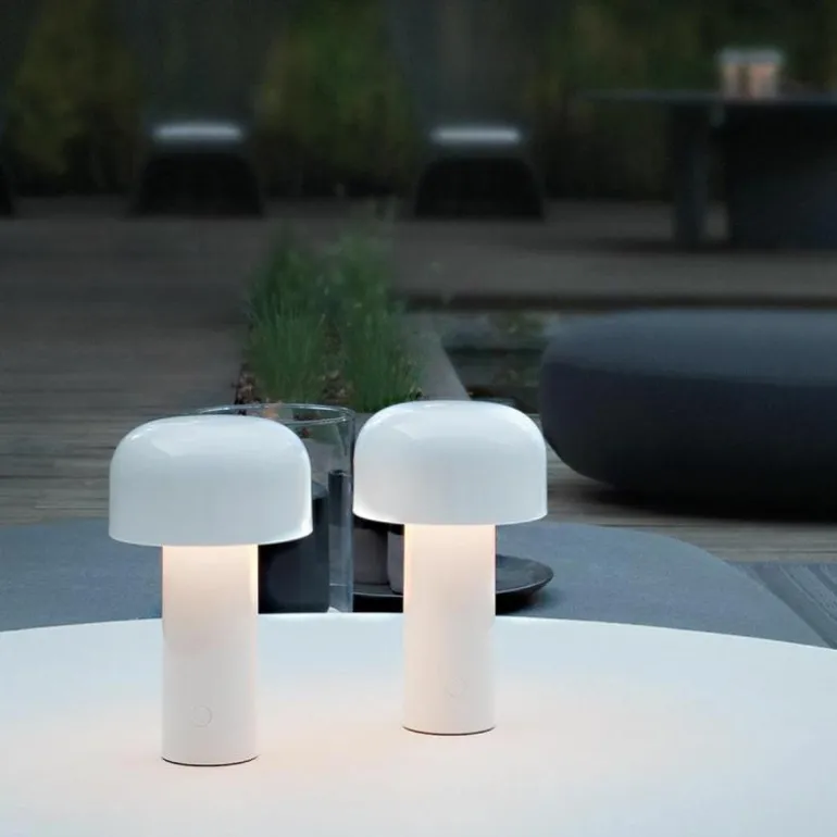 De FLOS Bellhop Tafellamp is een ontwerp van Edward Barber & Jay Osgery. Het design is voortgekomen uit een tafellamp die het Engelse designduo ontwierp voor het New London Design Museum. Gelukkig werd de tafellamp in het voorjaar van 2018 opgenomen in de collectie van FLOS, waardoor dit museumstuk nu ook bij u thuis de show kan stelen! De naam Bellhop verwijst naar de welbekende hotelbediende/belmannen met hun typische ronde hoedjes die je veel ziet in chique Engelse hotels. De Bellhop; een prachtig, stijlvol ontwerp met een verhaal!r