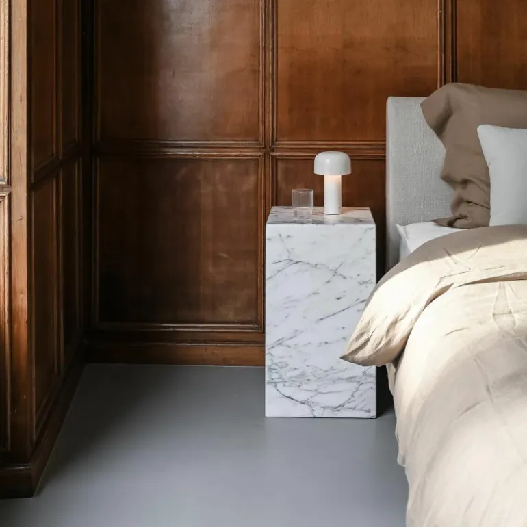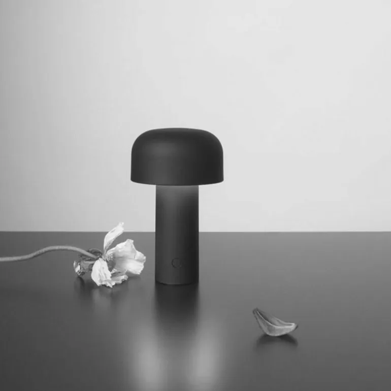 De Bellhop Tafellamp is een draadloze lamp. Hierdoor is de lamp gemakkelijk te verplaatsen en mee te nemen van de ene naar de andere ruimte in huis. Op een volle batterij kan de lamp ongeveer 24 uur lang schitteren, waarna hij met een bijgeleverde usb-kabel (met een lengte van 120 centimeter) opgeladen kan worden. De lichtschakelaar is verwerkt in de robuuste staander van de lamp. Met deze knop kan de lichtsterkte in vier verschillende standen ingesteld worden. r