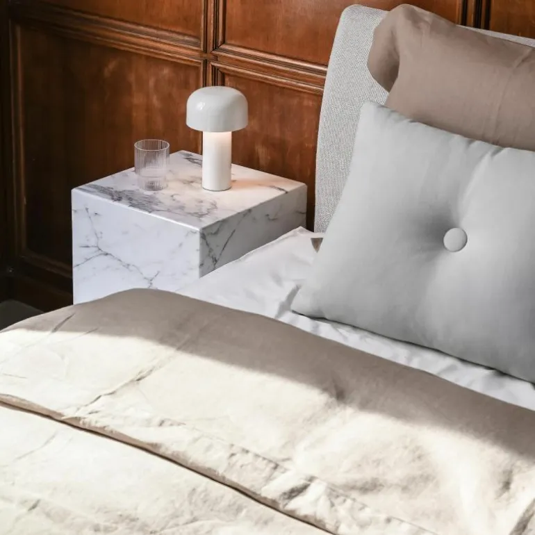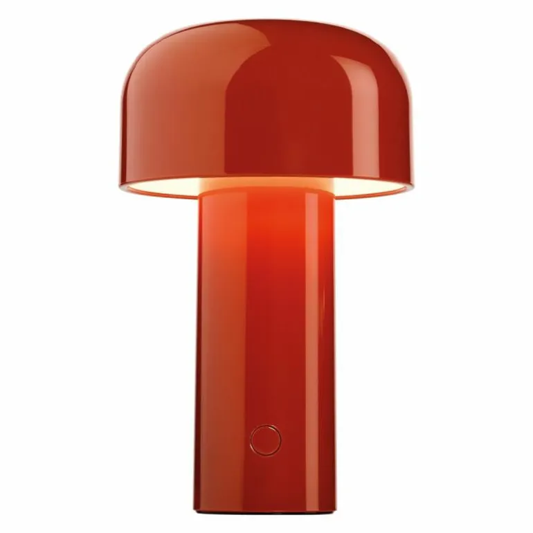 De Bellhop Tafellamp is gemaakt van gekleurd polycarbonaat en is verkrijgbaar in vier kleuren: oranje, wit, grijs en bruin. De opalen diffuser zorgt voor een gelijke en warme verspreiding van het geïntegreerde LED-licht (2700 Kelvin, 250 lumen).