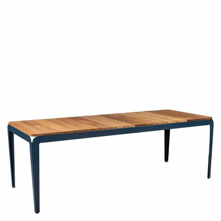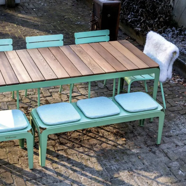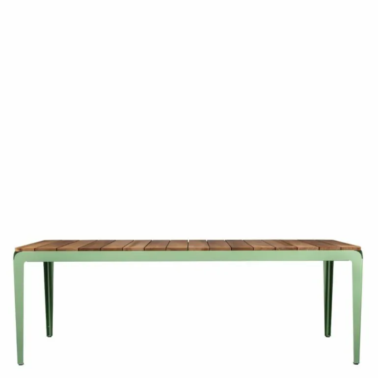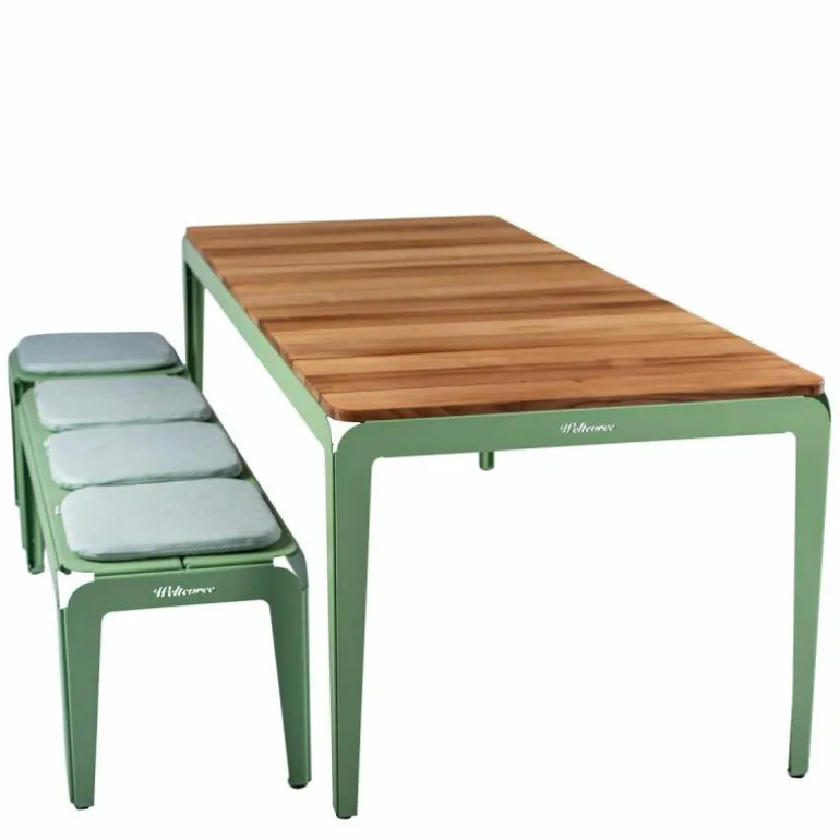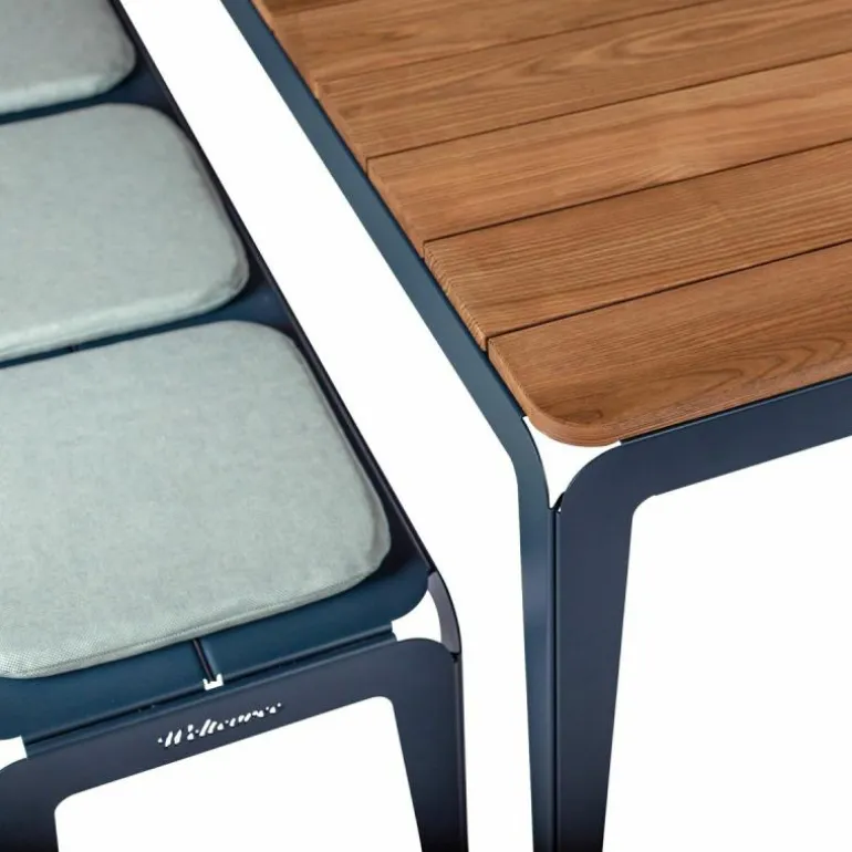 Het frame van de Bended Wood Tafel is vervaardigd uit staal dat in een hoek van 45 graden gebogen wordt. Zo worden alle schroeven en scherpe randen aan het zicht onttrokken en krijgt het een strakke uitstraling. Deze methode zorgt ervoor dat de tafel op elke ondergrond stabiel staat. De Bended Wood Tafel is verkrijgbaar in drie gepoedercoate kleuren, Gray Blue, Pale Green en Agate Grey en heeft een lengte van 220 centimeter, een breedte van 90 centimeter en een hoogte van 75 centimeter.