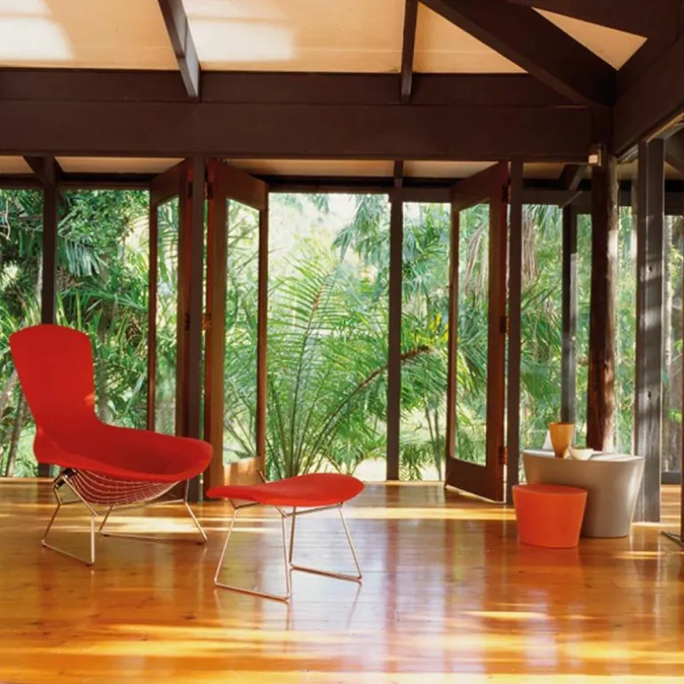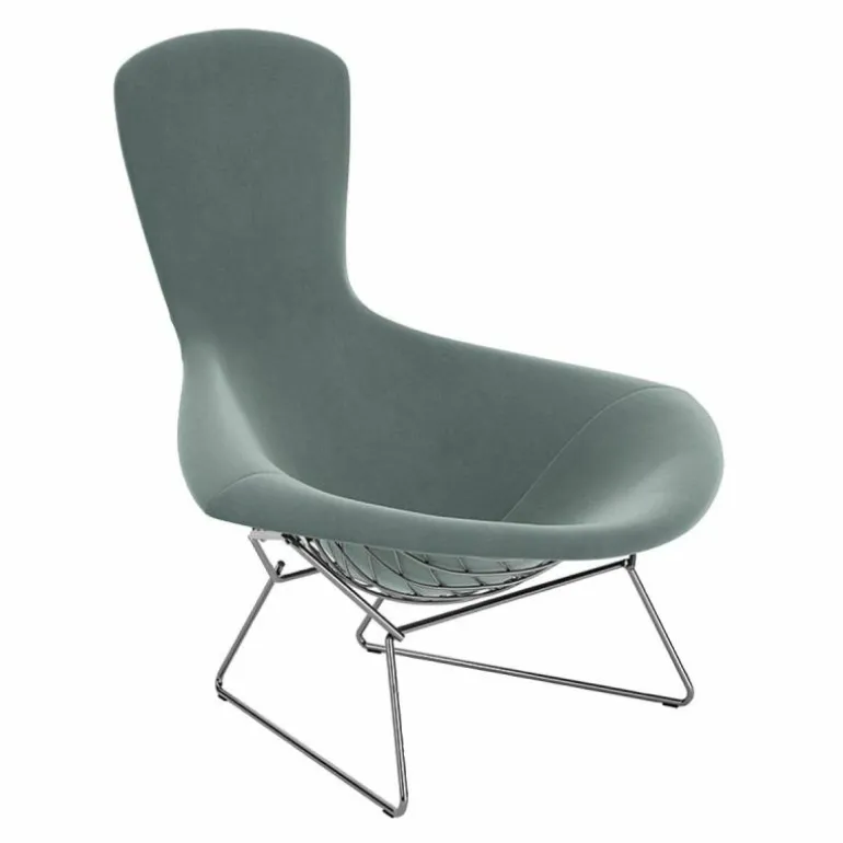 De Bertoia Bird Fauteuil is vernoemd naar de vorm van de zitschaal. Deze grote zitting heeft iets weg van een vogel die zijn vleugels spreidt. Dankzij zijn vorm nodigt de stoel uit om heerlijk in weg te zakken. Het frame van de stoel is gemaakt van gelast staal en heeft een afwerking van gepolijst chroom maar is ook verkrijgbaar met een witte of zwarte poedercoating. De stoel is gestoffeerd met Knoll Velvet en u heeft de keuze uit zes varianten. Echter zijn er nog veel meer mogelijkheden wat betreft stoffering. Heeft u interesse in een andere stoffering? Neem dan contact op met onze interieurstylisten in de winkel, of kom even langs.