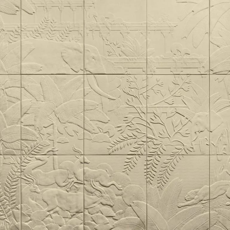 Het Between Rivers Behang is een origineel kunstwerk van Frédérique et Rob Whittle – and Max en omarmt de essentie van tijdloze sereniteit. Het patroon van de muurbekleding is geïnspireerd door de weelderige natuur van Babylonia, tussen de rivieren Tigris en Eufraat. Met een illustratie van olifanten, gazellen, dadelpalmen en resten van oude tempels brengt het panorama een stukje oudheid met zich mee. Bovendien zorgt het subtiele dessin in combinatie met de gedempte kleurtinten voor een kalme sfeer in ieder interieur. r