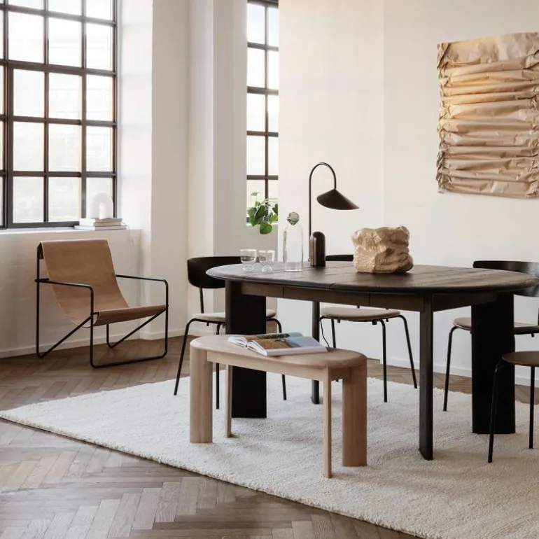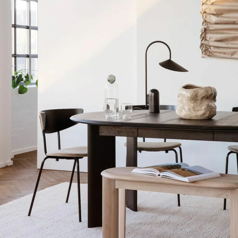 De Ferm Living Bevel Bank is een ontwerp van Trine Andersen. Het design is een mix van klassieke en moderne vormgeving, door de ovale zitting en de langgerekte tafelpoten. Zowel de zitting als de poten hebben bovendien een zachte, ronde afwerking. Het bankje past perfect bij de gelijknamige tafelserie van Ferm Living. De bank kan ook als extra bank toegepast worden in een gang, woonkamer of slaapkamer. Door de compacte afmetingen weet de bank haast overal wel een plekje te vinden.r