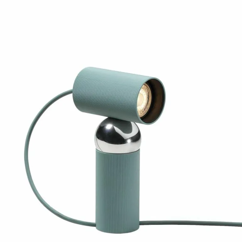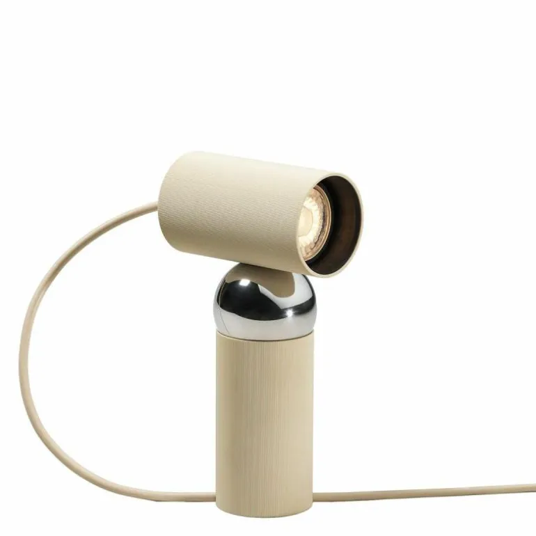 Het design van de karakteristieke tafellamp wordt gekenmerkt door twee gekleurde cilinders die met elkaar verbonden zijn middels een kogelgewricht. Tevens zorgt deze connector ervoor dat het licht naar eigen wens te richten is. Zo is het kleurrijke design geschikt als sfeervolle tafellamp, maar ook als functionele bureaulamp in de werkruimte of voor het lezen van een goed boek. Naast de verstelbare lampenkap, kan de kabel verborgen worden in de speciale behuizing onder de cilindrische voet. Hierbij wordt de kabel aan één kant in een lus vergrendeld en blijft de kabel op zijn plaats. r