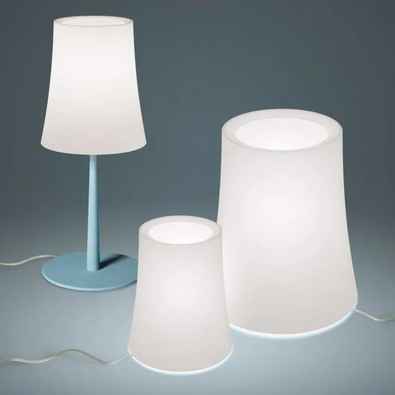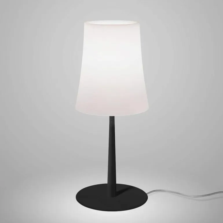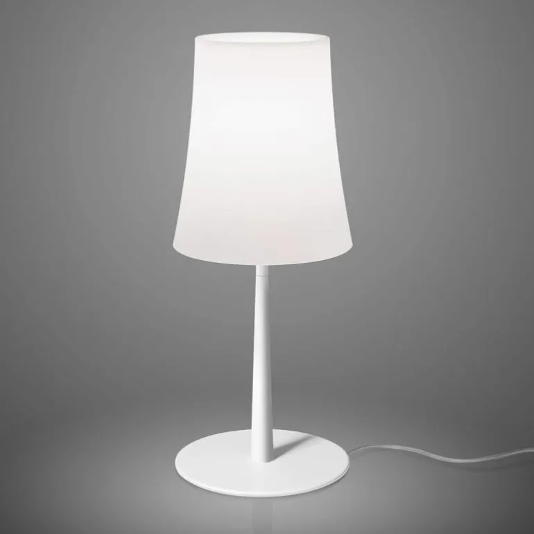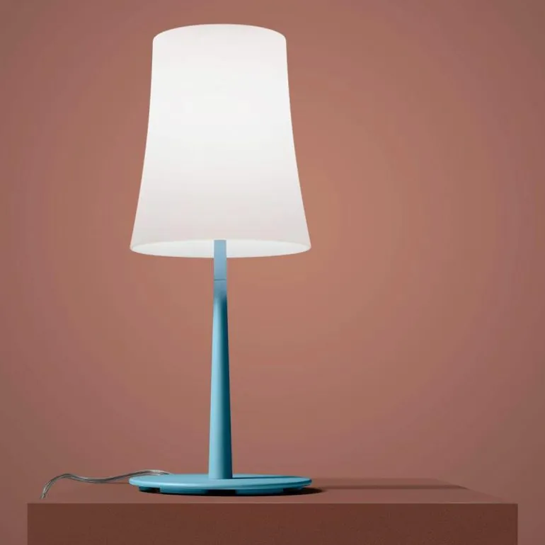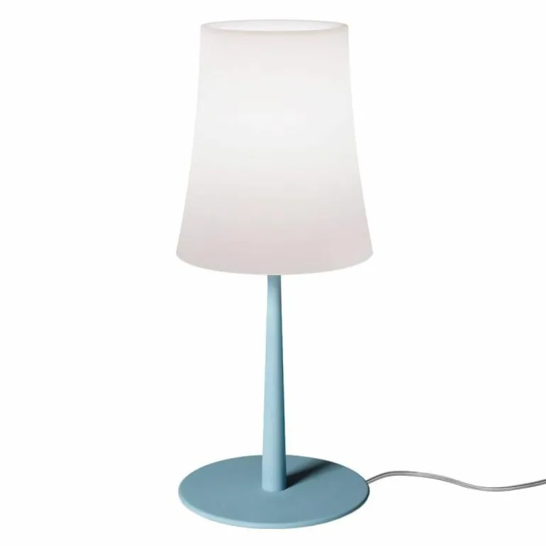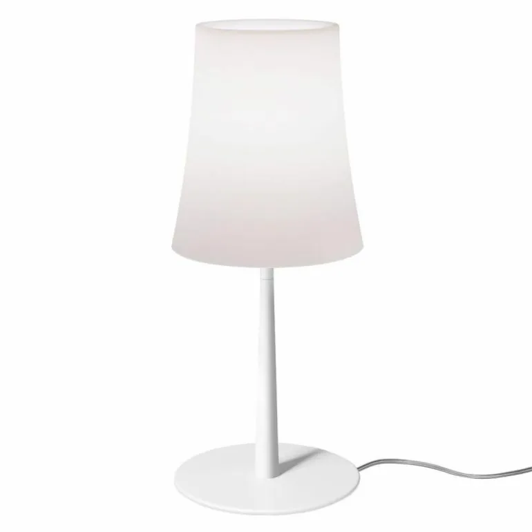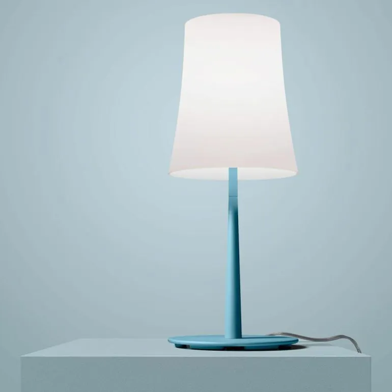 De voet is gemaakt van gecoat aluminium en draagt de kap van polycarbonaat, dat door middel van spuitgieten de karakteristieke vorm van de Birdie lampenkap heeft gekregen. De lamp is aan en uit te zetten middels een aan- en uitschakelaar die aan de transparante snoer is toegevoegd. De Birdie Easy tafellamp is verkrijgbaar in zes verschillende kleuren.