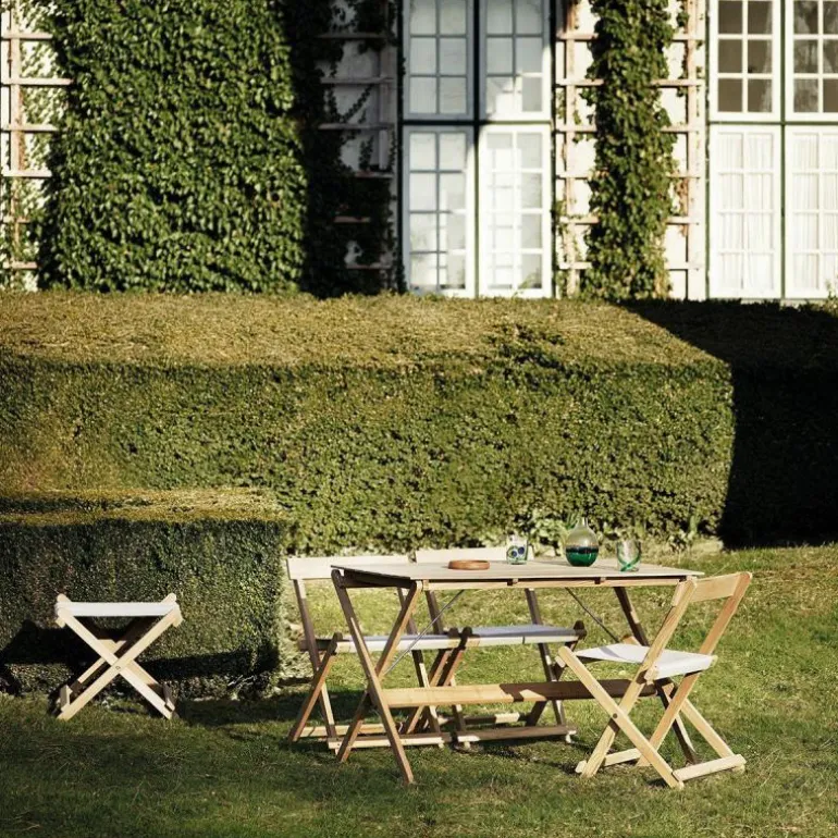 De Carl Hansen BM4570 Stoel is een ontwerp van Børge Mogensen. De stoel maakt deel uit van de prachtige Deck Chair Series die de Deense ontwerper in de late jaren van 1960 ontwierp. Mogensen creëerde de serie in eerste instantie voor zijn eigen terras. De gehele set voldoet aan Mogensens behoefte aan functioneel, comfortabel én ruimtebesparend buitenmeubilair. Het stevige lichtgewicht frame zorgt ervoor dat het meubilair makkelijk te verplaatsen is en het inklapbare ontwerp neemt minimale opbergruimte in beslag. Børge Mogensen heeft een functionele benadering van ontwerpen die terug te zien is in elk onderdeel van de meubelserie. De meubels zijn minimalistisch en praktisch, met elegante details. Een veelvoorkomend kenmerk in de serie is het afgeronde uiteinde van het frame, wat ook typisch een onderdeel is van de stijl van Mogensen. De Deck Chair serie is geïnspireerd op de eenvoud van het Shaker meubilair uit de achttiende en negentiende eeuw, met strakke lijnen en functionele details. De Shakers worden ook wel de eerste minimalisten genoemd. De Shaker meubels werden bedachtzaam gemaakt met functionele vormen en verhoudingen. De Shakers waren innovatief en creëerden een oplossing om ruimte te besparen door meubilair aan de muur te hangen wanneer het niet gebruikt werd. Mogensen heeft dit opbergsysteem ook onderdeel gemaakt van de Deck Chair Series met de BM5270 kapstok. De ingeklapte meubels zijn eraan op te hangen als een decoratief, architectonisch object. De meubels uit de Deck Chair Series zijn gemaakt van onbehandeld FSC-gecertificeerd teak. Het is een duurzame, sterke houtsoort door de van nature aanwezige olie. Teak kan tegen verschillende wisselende weersomstandigheden en is daardoor ideaal voor de wisselende Nederlandse seizoenen. Wanneer de meubels het gehele jaar buiten staan krijgt het hout na verloop van tijd een mooie grijze tint. Het meubelbeslag is van roestvrijstaal en is daardoor bestand tegen alle weersomstandigheden. De BM4570 Stoel heeft een sterke, simpele constructie die gemakkelijk in te klappen is. De zitting van de stoel is gemaakt van de weerbestendige Sunbrella Heritage Papyrus 18006. Deze stof droogt snel op na een regenbui. De kleur van de stof is fris, neutraal en tijdloos. Sunbrella adviseert om los vuil direct af te borstelen voordat het intrekt. Daarnaast is het advies om vloeibare morsvlekken direct te deppen met een schone, droge doek. De breedte van de BM4570 Stoel is 50 centimeter, de diepte is 53 centimeter en de hoogte is 72 centimeter. De zithoogte van de stoel is 43,6 centimeter en de zitdiepte is 38,6 centimeter.