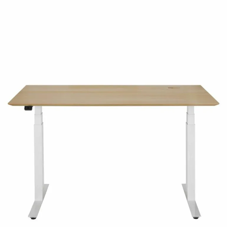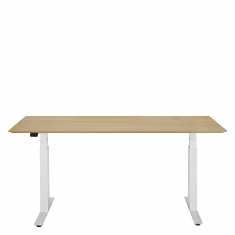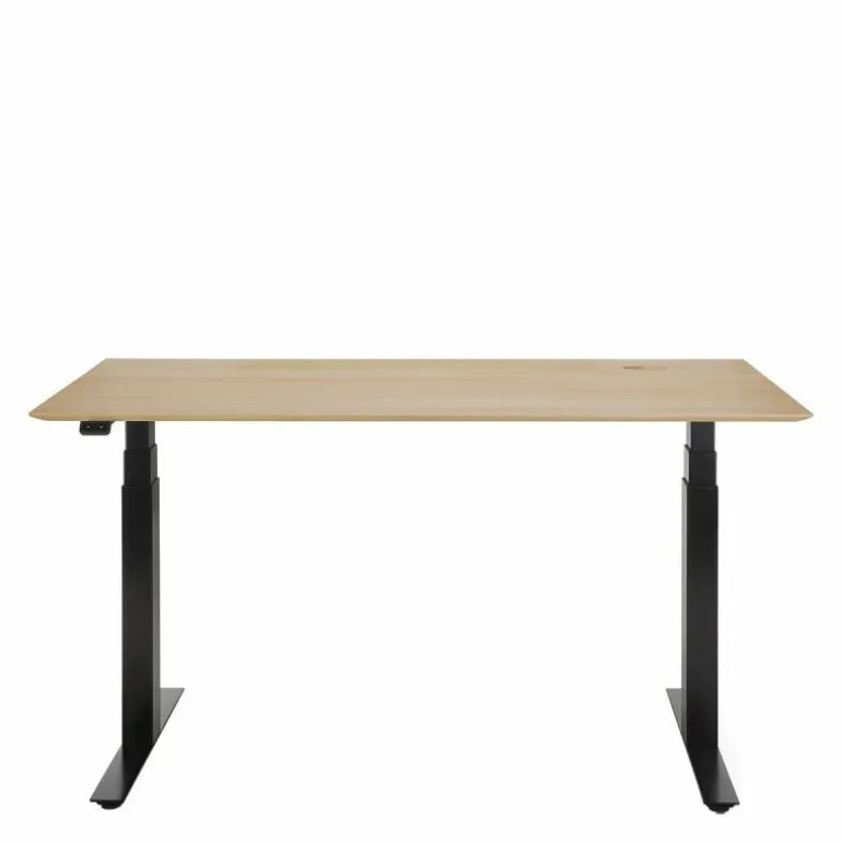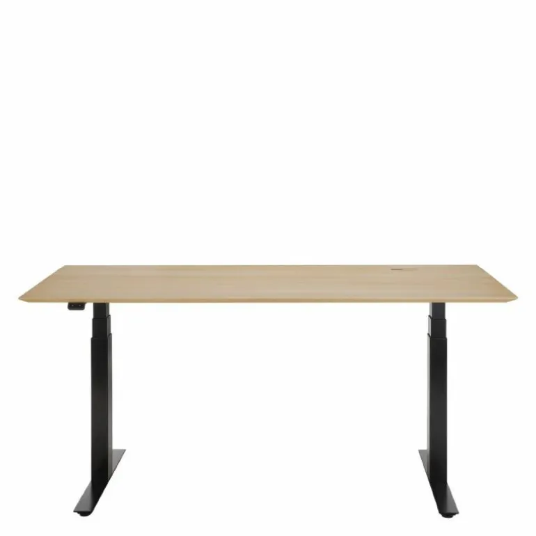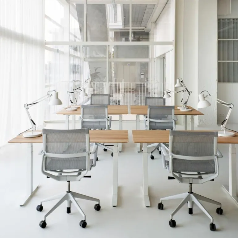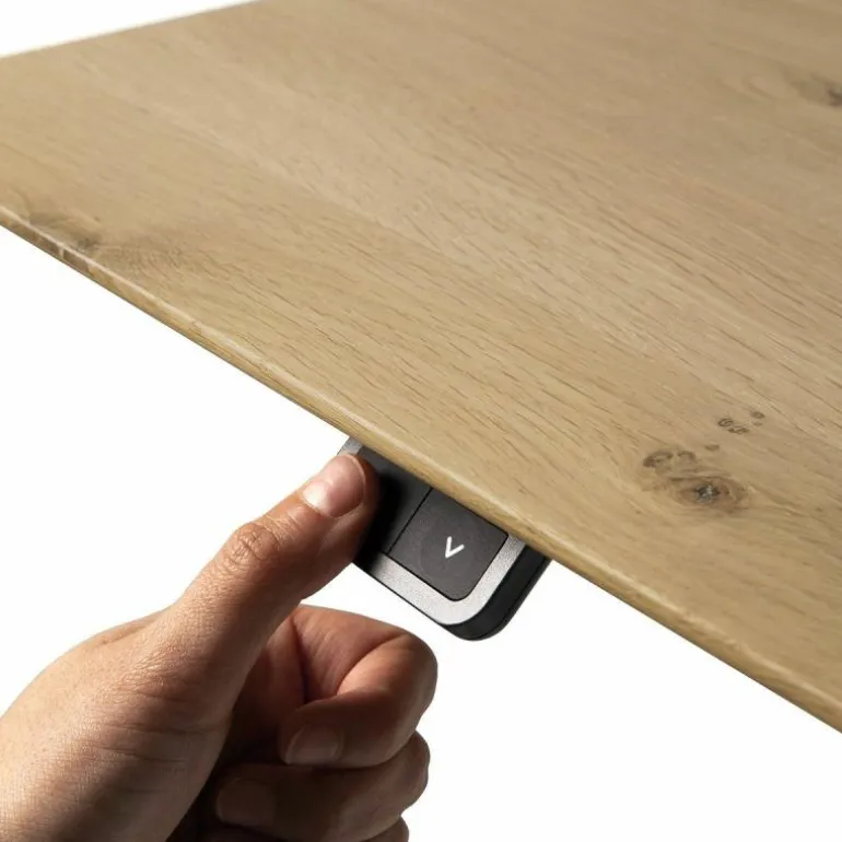 Centraal in het ontwerp staat het verstelbare karakter van het bureau. De hoogte van het werkblad is eenvoudig aan te passen, binnen een bereik van circa 64 tot 130 centimeter. Hiermee wordt een flexibele werkhouding mogelijk gemaakt – zittend of staand – afgestemd op de individuele voorkeur van de gebruiker. Deze functionaliteit ondersteunt niet alleen ergonomisch werken, maar stimuleert ook een actieve werkhouding, wat bijdraagt aan het algehele werkcomfort.