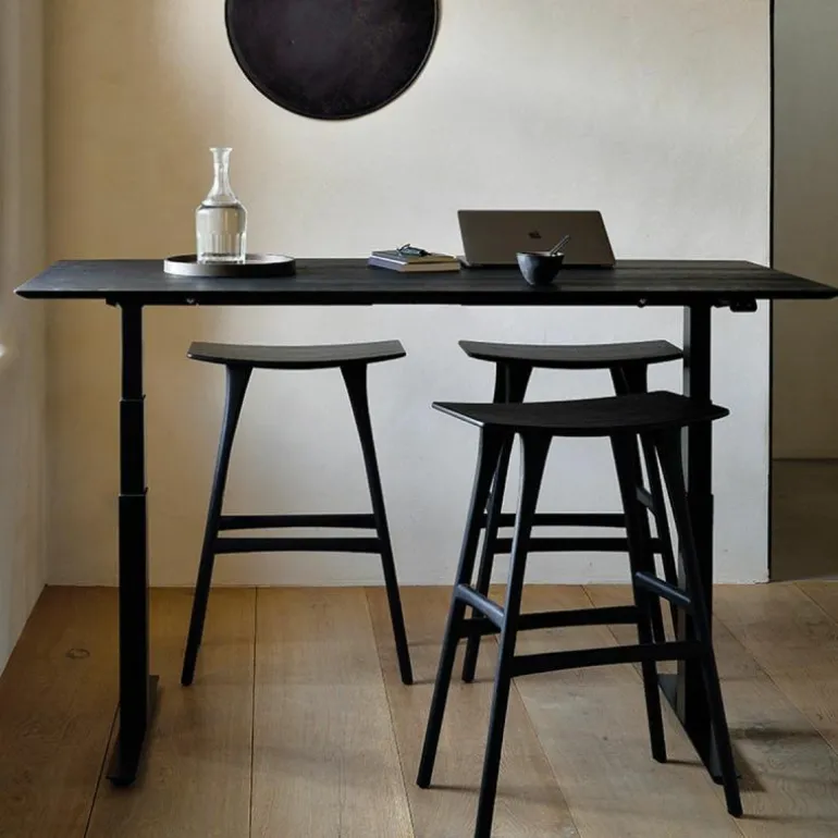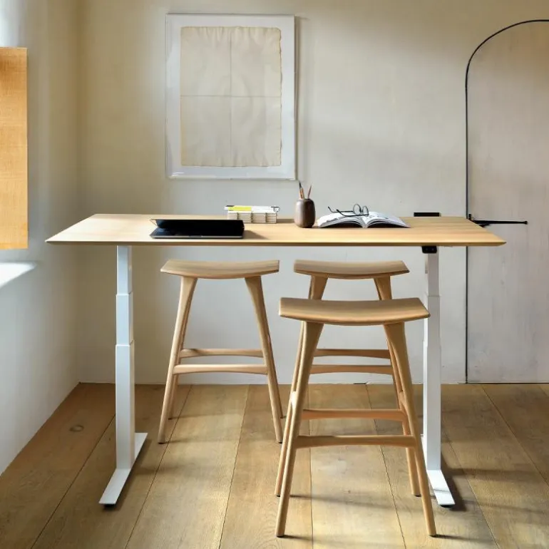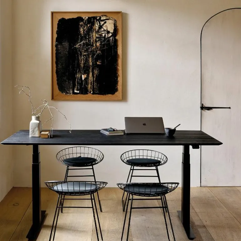 Het bureau is opgebouwd uit hoogwaardige materialen, met een massief houten blad en een metalen onderstel. Deze materiaalkeuze zorgt voor een visueel evenwicht tussen robuustheid en verfijning. Ondanks het stevige karakter van de constructie oogt het ontwerp licht en minimalistisch. Dankzij deze esthetiek past het Bok Bureau Verstelbaar moeiteloos in uiteenlopende interieurstijlen, van eigentijds tot zakelijk klassiek.