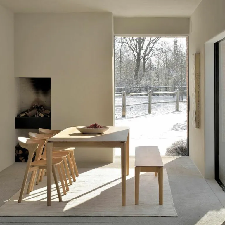 Het ontwerp onderscheidt zich door een strak lijnenspel en verfijnde details. De schuin aflopende poten creëren een licht, elegant silhouet, terwijl ze tegelijkertijd zorgen voor een solide en stabiele basis. Deze doordachte combinatie van vorm en functie maakt de Bok Eettafel tot een geraffineerd ontwerp met een sterke visuele en praktische meerwaarde.